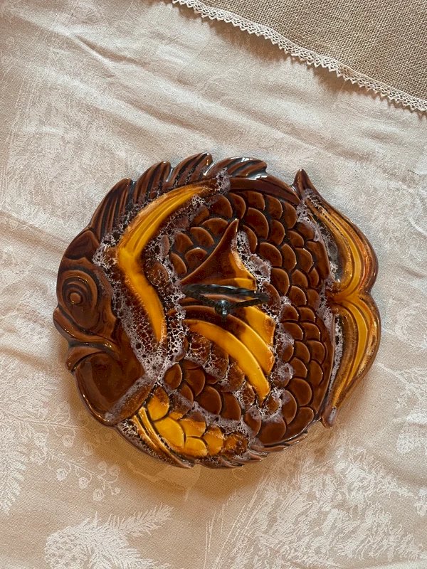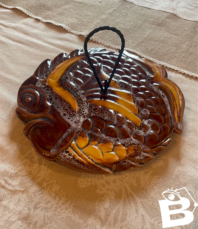 Dish for presenting cheese or small pastries Ceramic 1960s Vallauris signed Very good condition Diameter 28cm The handle will be unscrewed for shipping