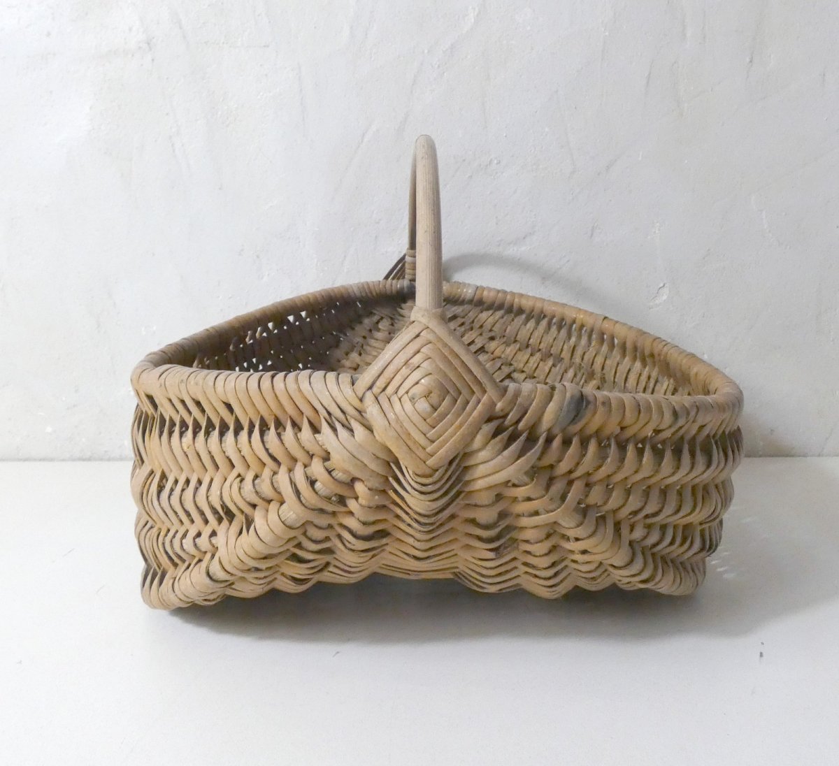 Old wicker basket. Height: 24 Width: 36.5 x 32 cm. Original shape in very good condition.
