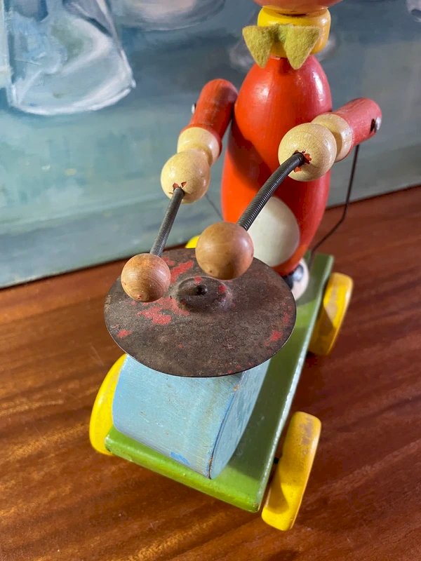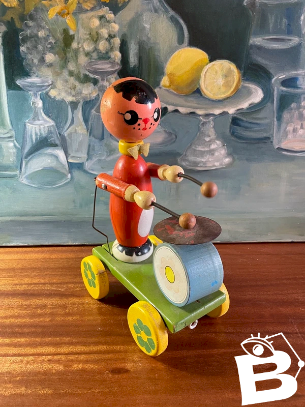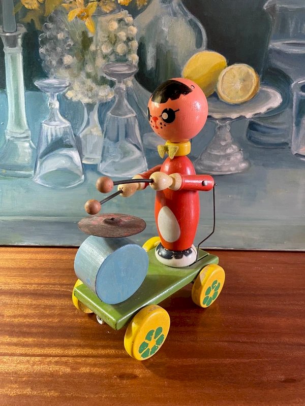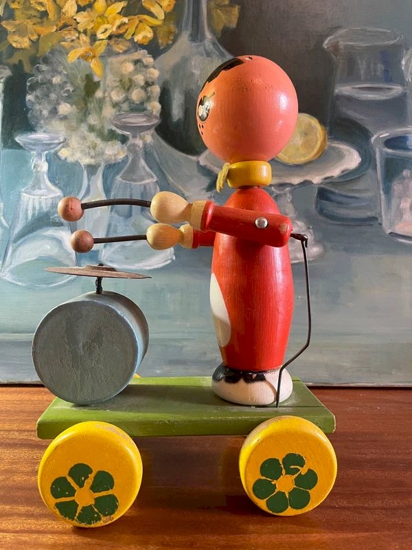 Vintage wooden toy from the 50s Just attach a pulling string for it to drum Length 18cm, height 27cm