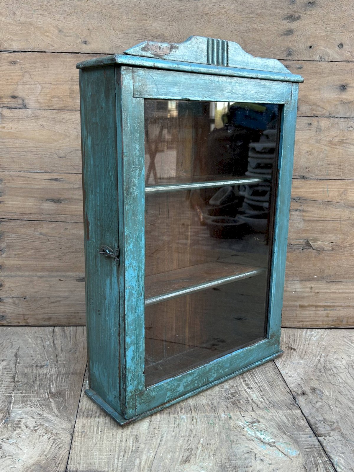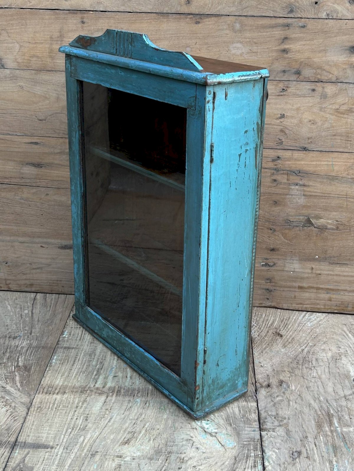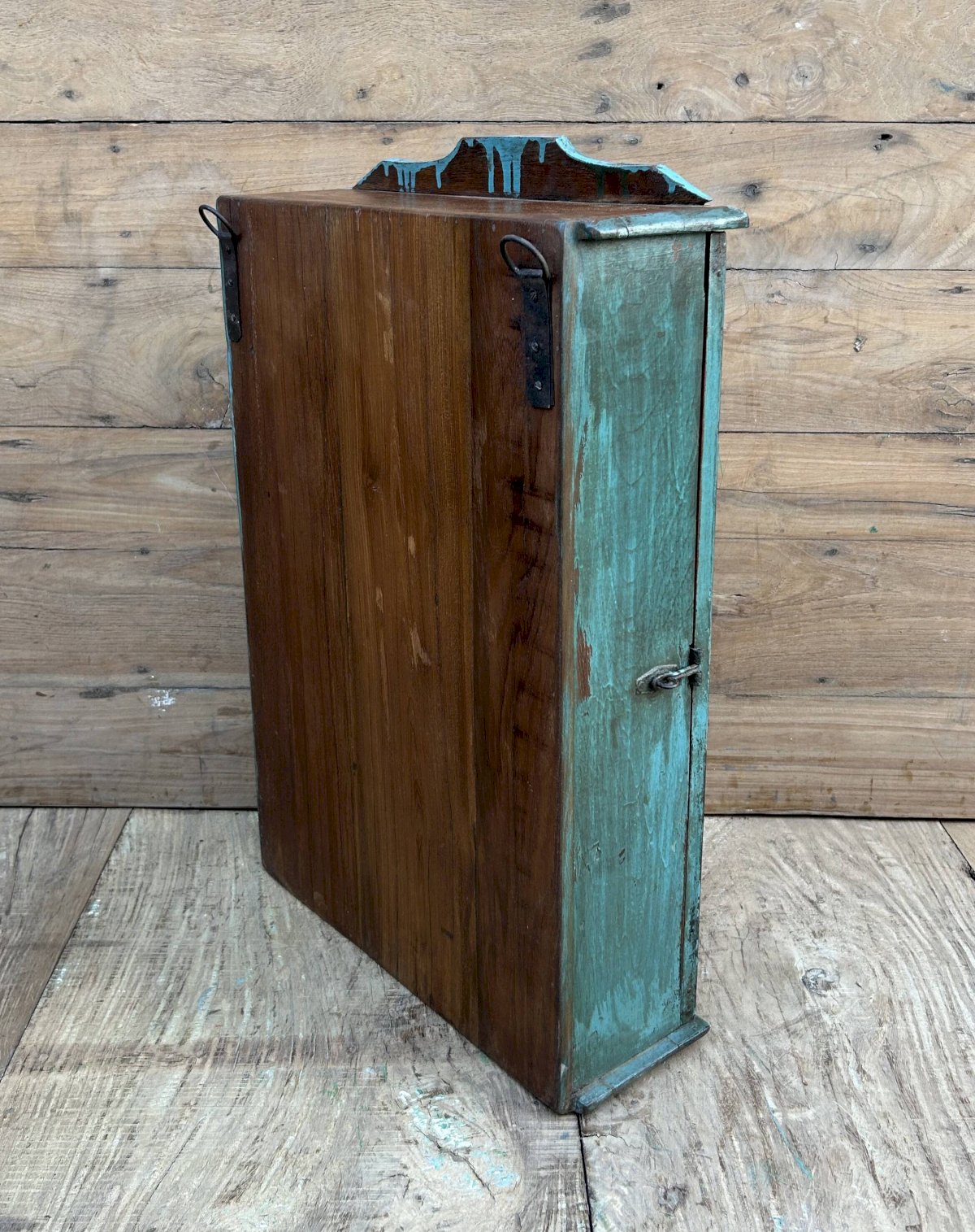 Burma teak wall display cabinet with original patina