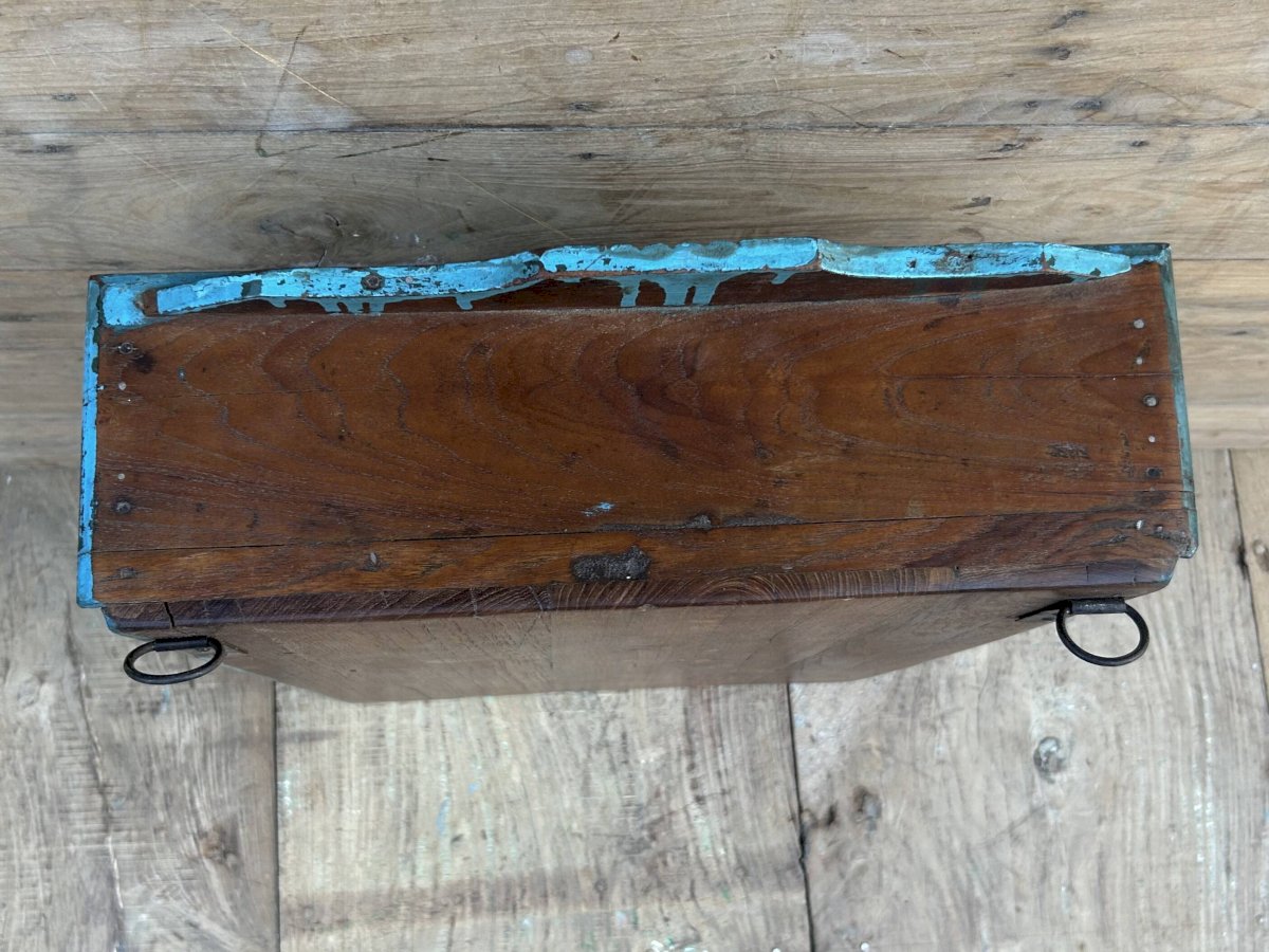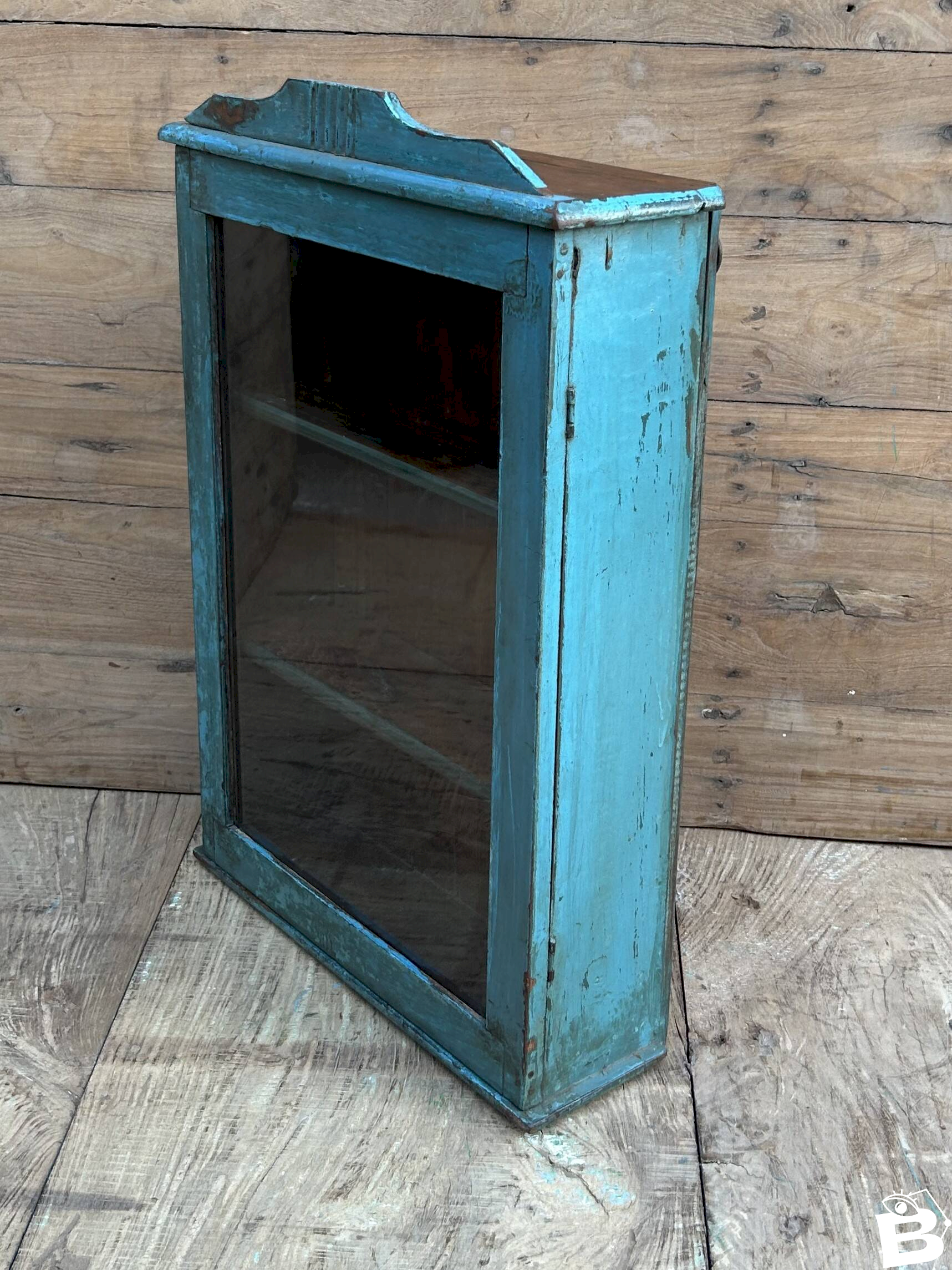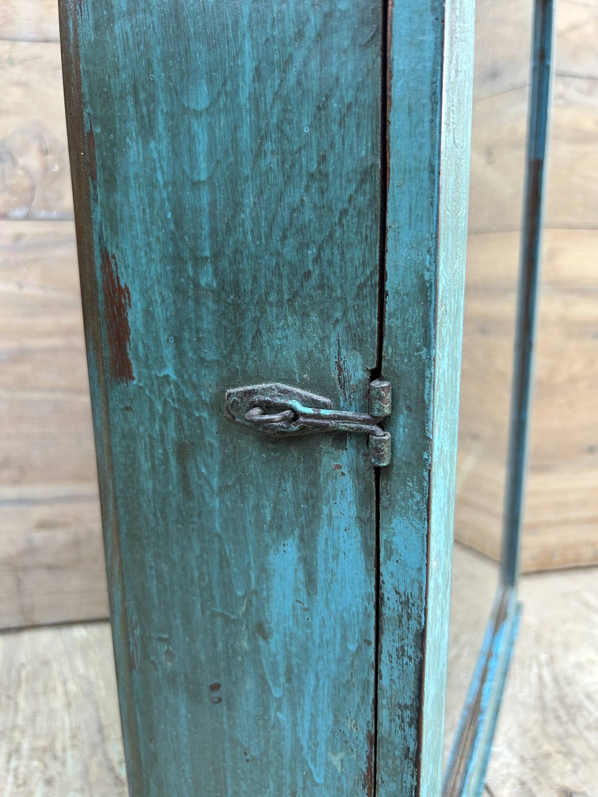 Burma teak wall display cabinet with original patina