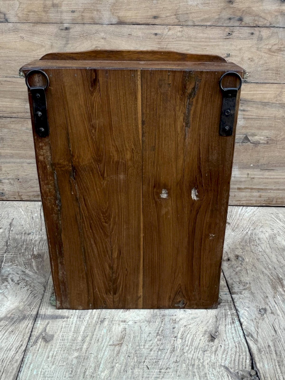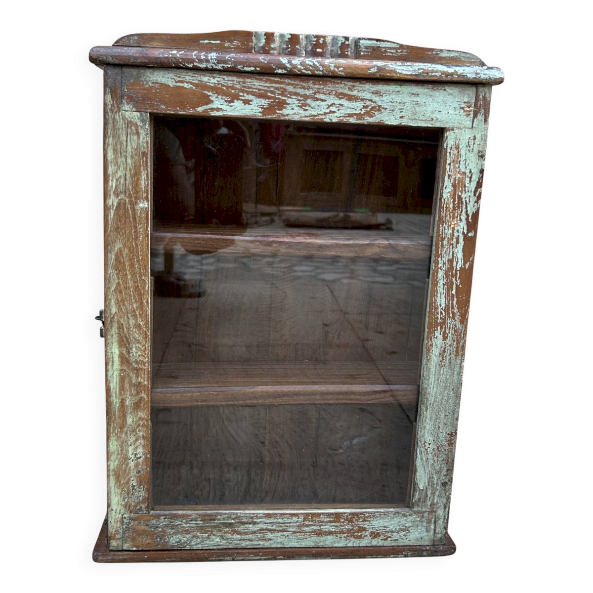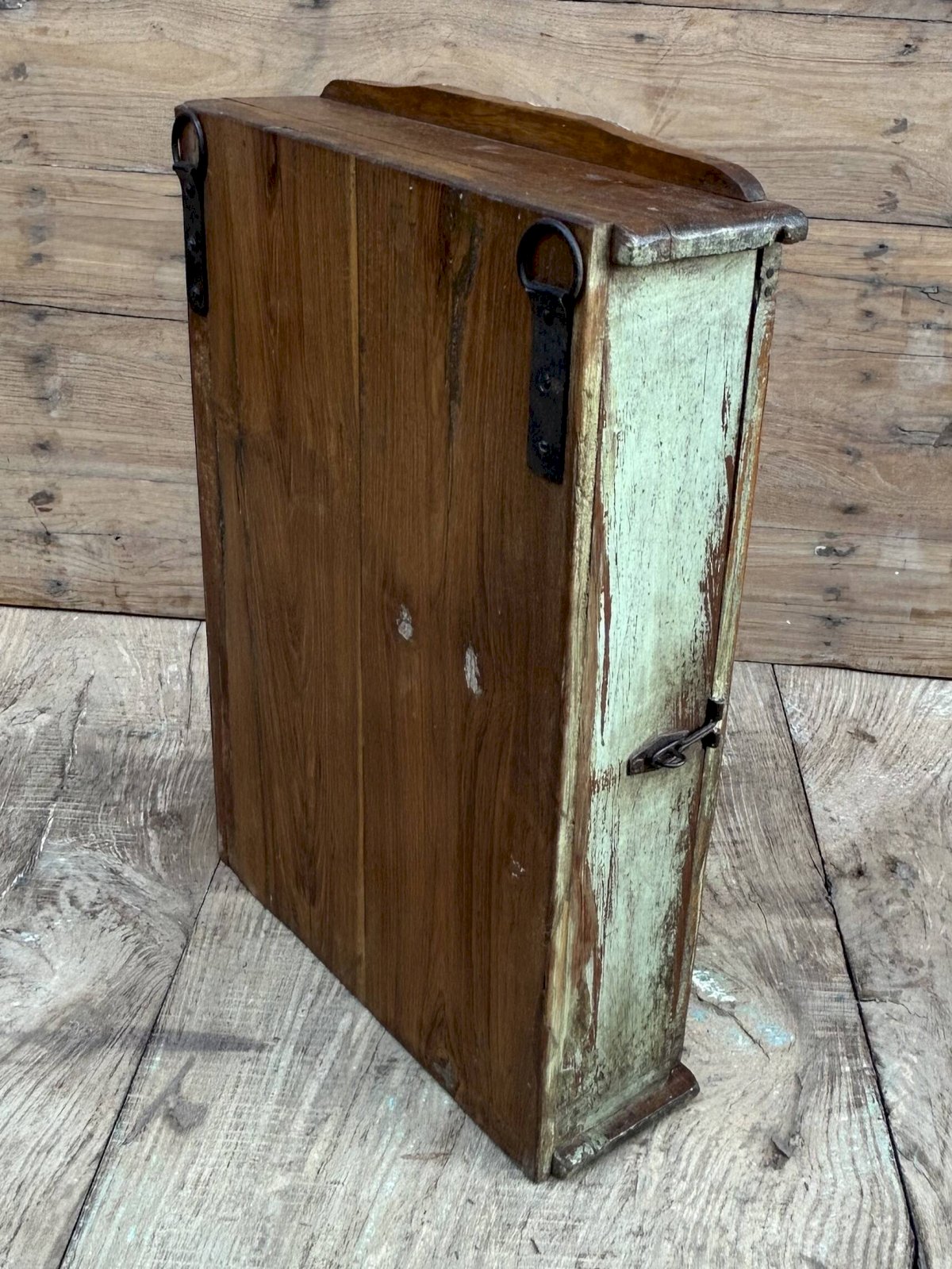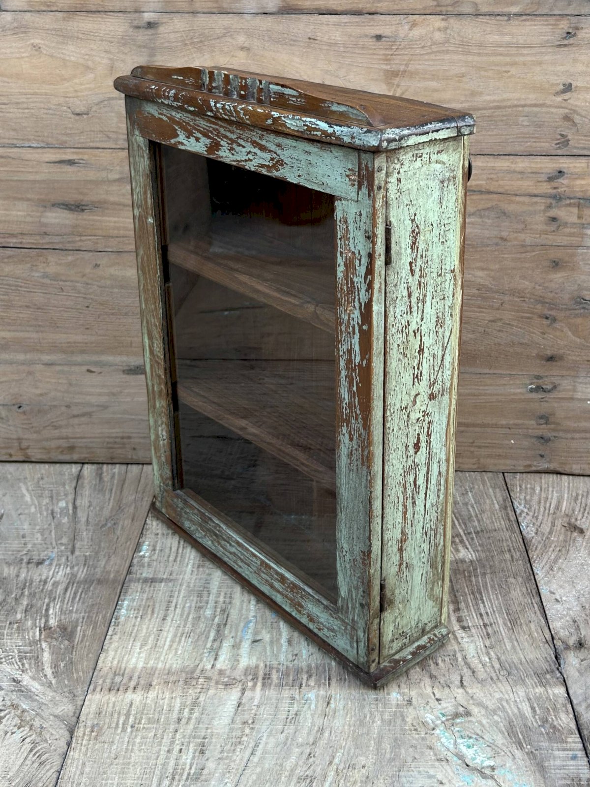 Burma teak wall display cabinet with original patina