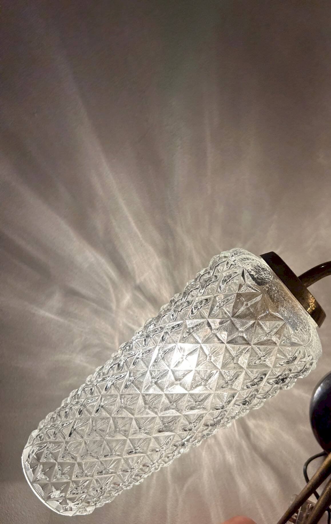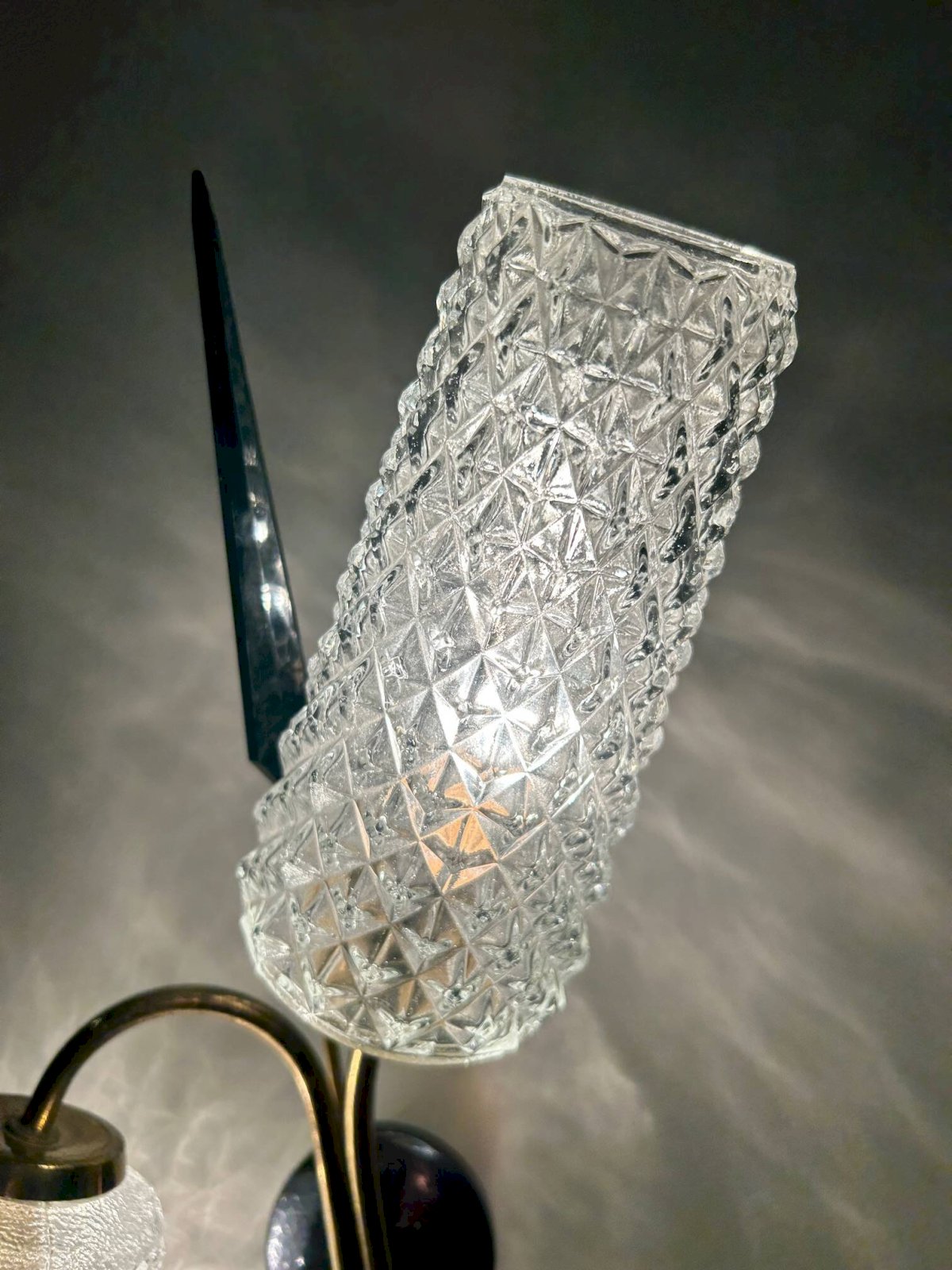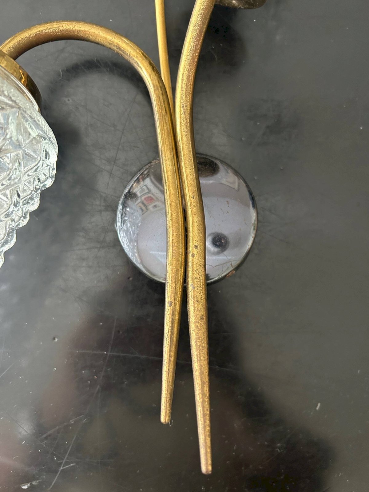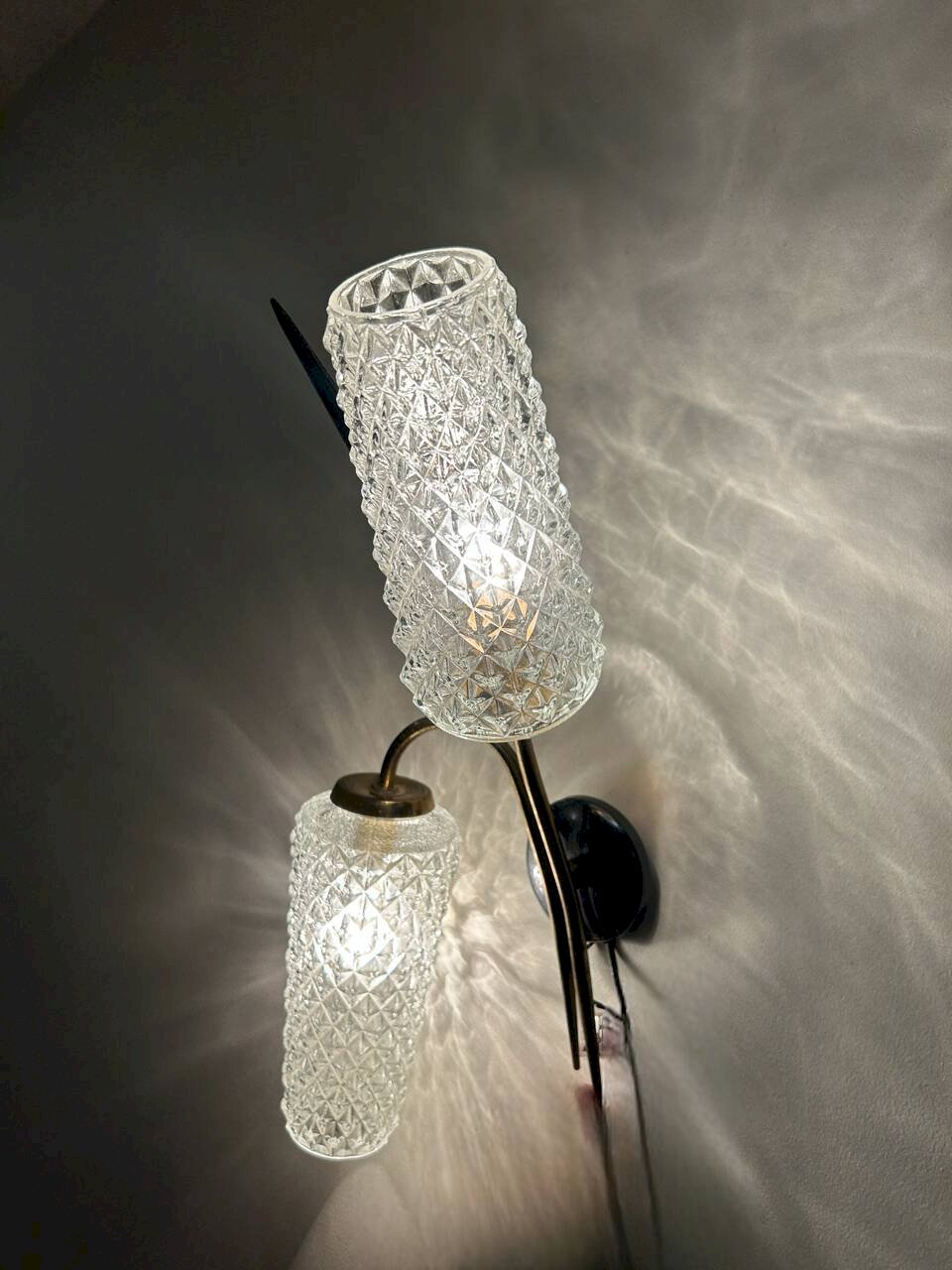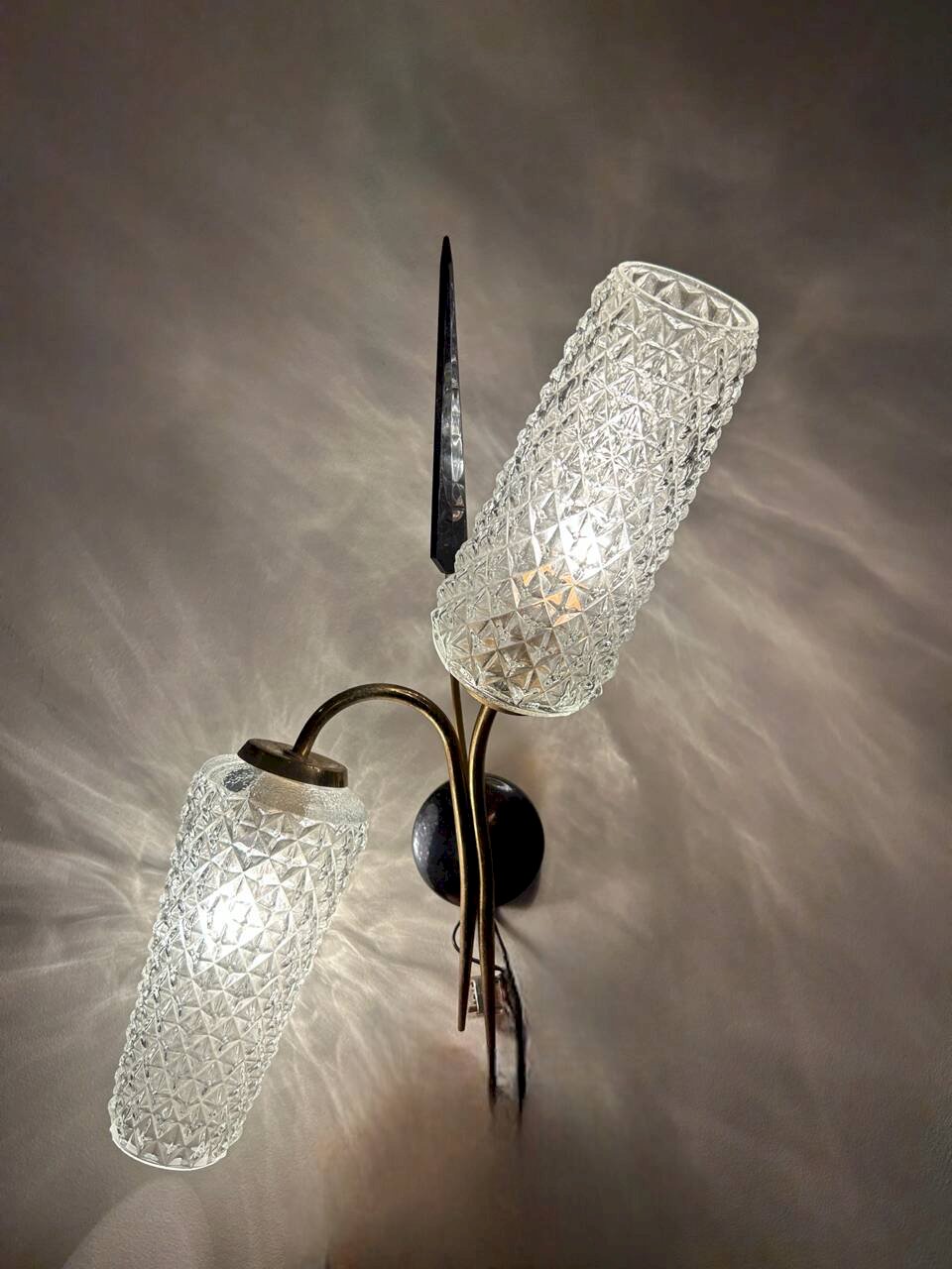 Double-light wall lamp on a brass base with cut glass reflector. L: 25 W: 12 H: 40