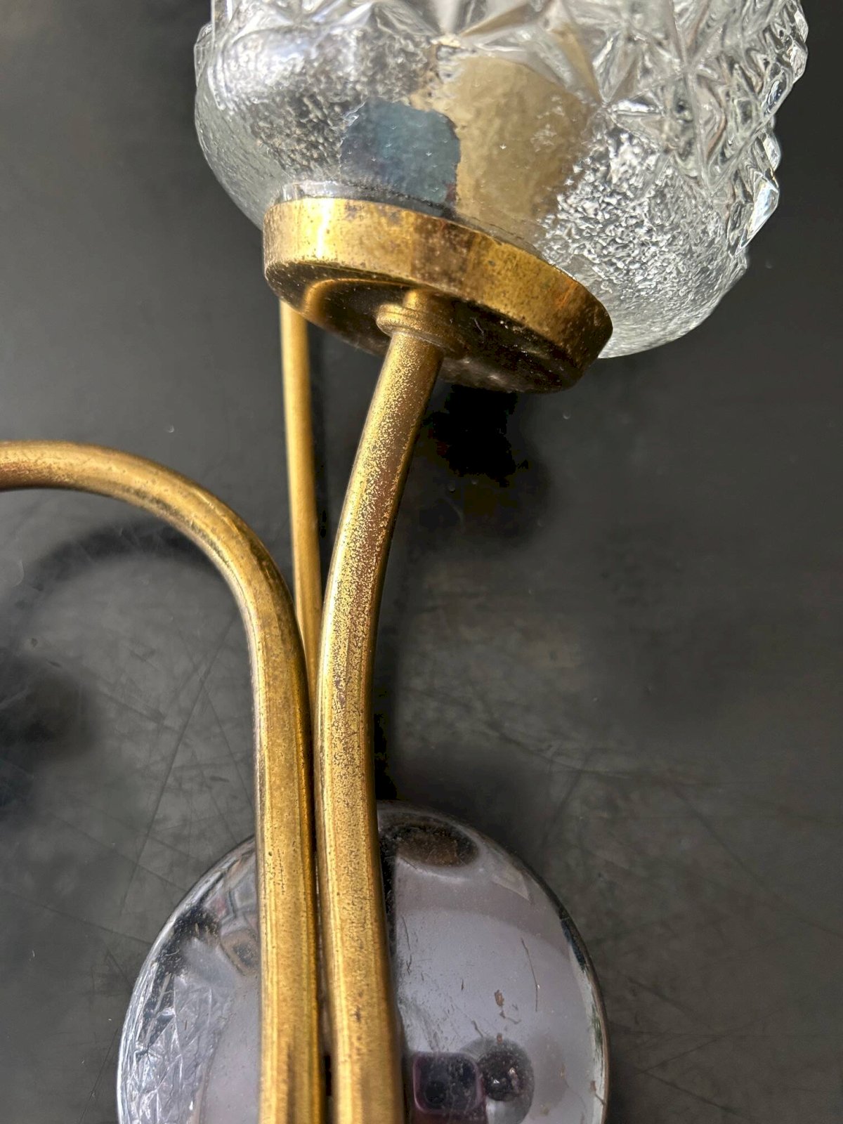 1970s Wall lamp Base / wooden support Tulip with ruffles / Frosted glass