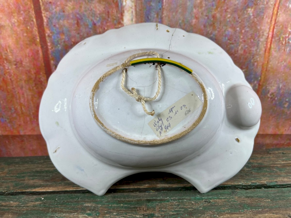 Antique wash basin in Waly faience, 19th century, floral decoration. Condition: chip and hairline crack. Dimensions: 27.5cm x 22cm, height: 8cm. Authenticity: Original. Weight: 0.8. Height: 8. Material: Faience. Length: 22. Width: 27.5. Type: wash basin. Brand: Waly. Origin: France. Subtype: wash basin. Country of origin: France. Style: folk art.