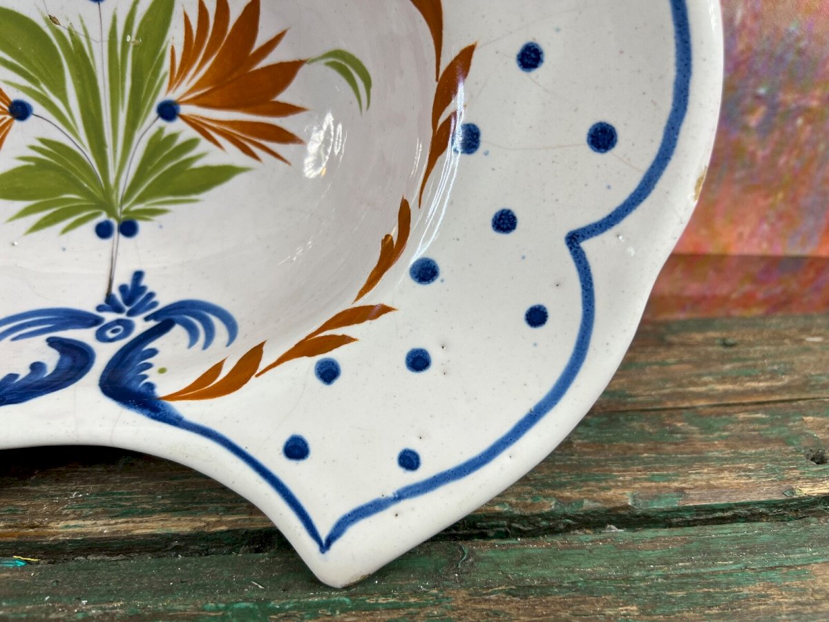 Waly XIXth century beard plate – floral decoration – antique earthenware – France