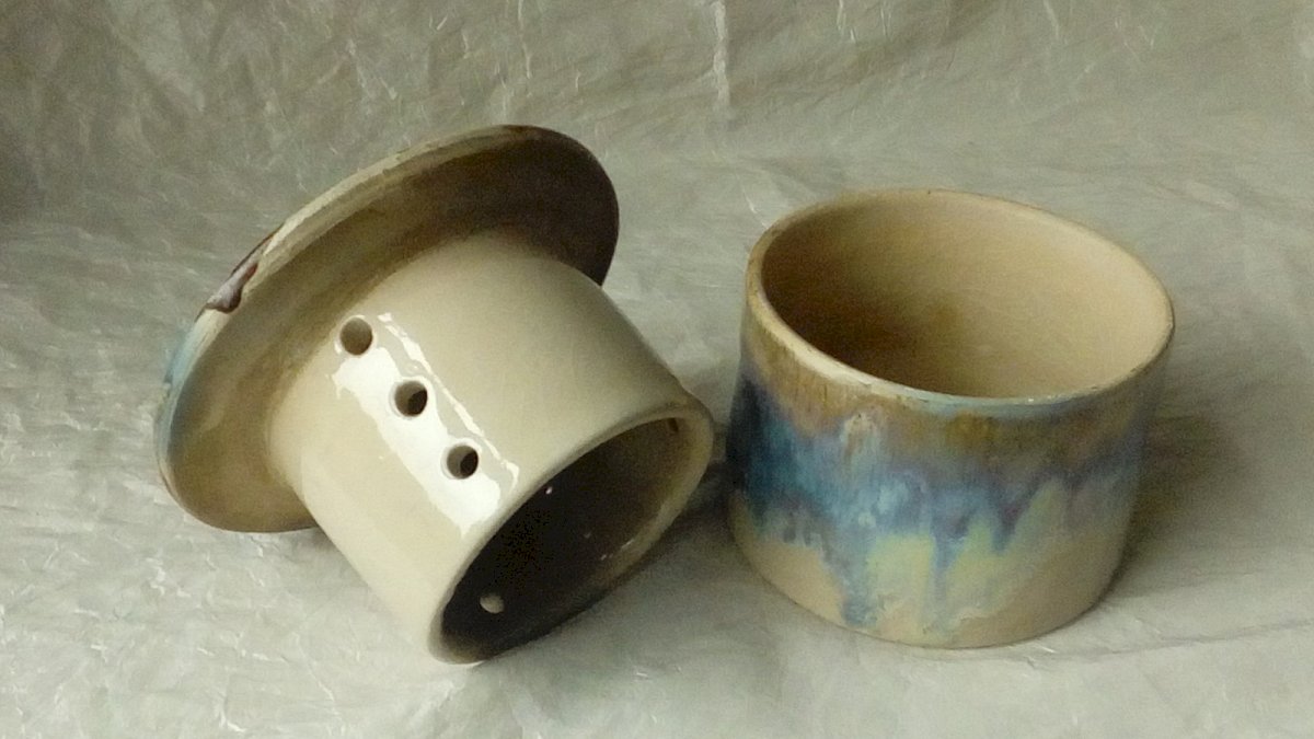 VERY BEAUTIFUL WATER BUTTER DISH IN GLAZED STONEWARE FLAME DECORATION HEIGHT 9.50 cm DIAMETER 9.90 cm IN GOOD CONDITION Condition: Used Item that has been used. Item showing some superficial signs of wear, fully operational and functioning properly. It may be a demonstration model or an item returned to the store after a short period of use. Possible imperfections. Color: Multicolor Finish: Glossy Type: Butter dish Material: Ceramic Features: Decorative