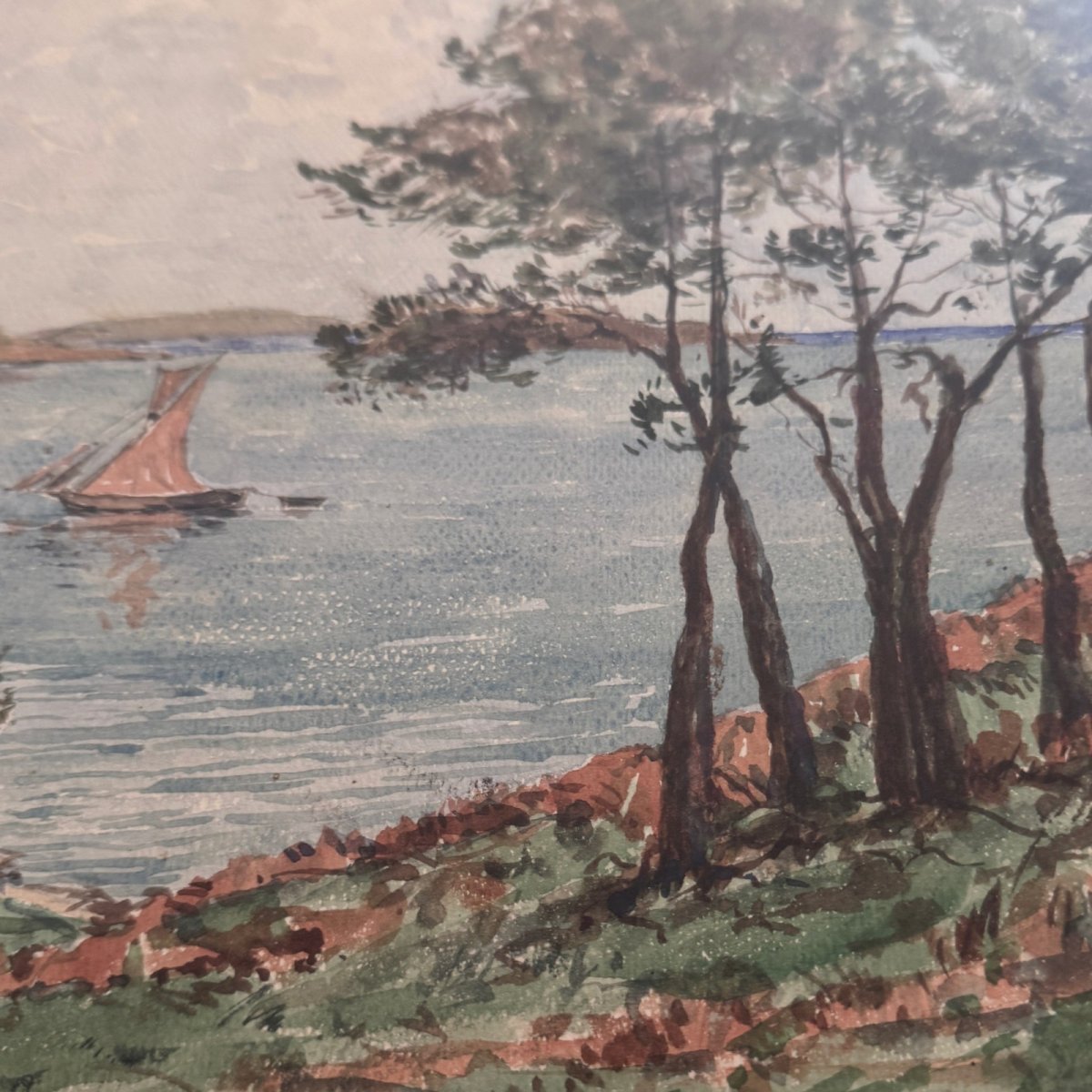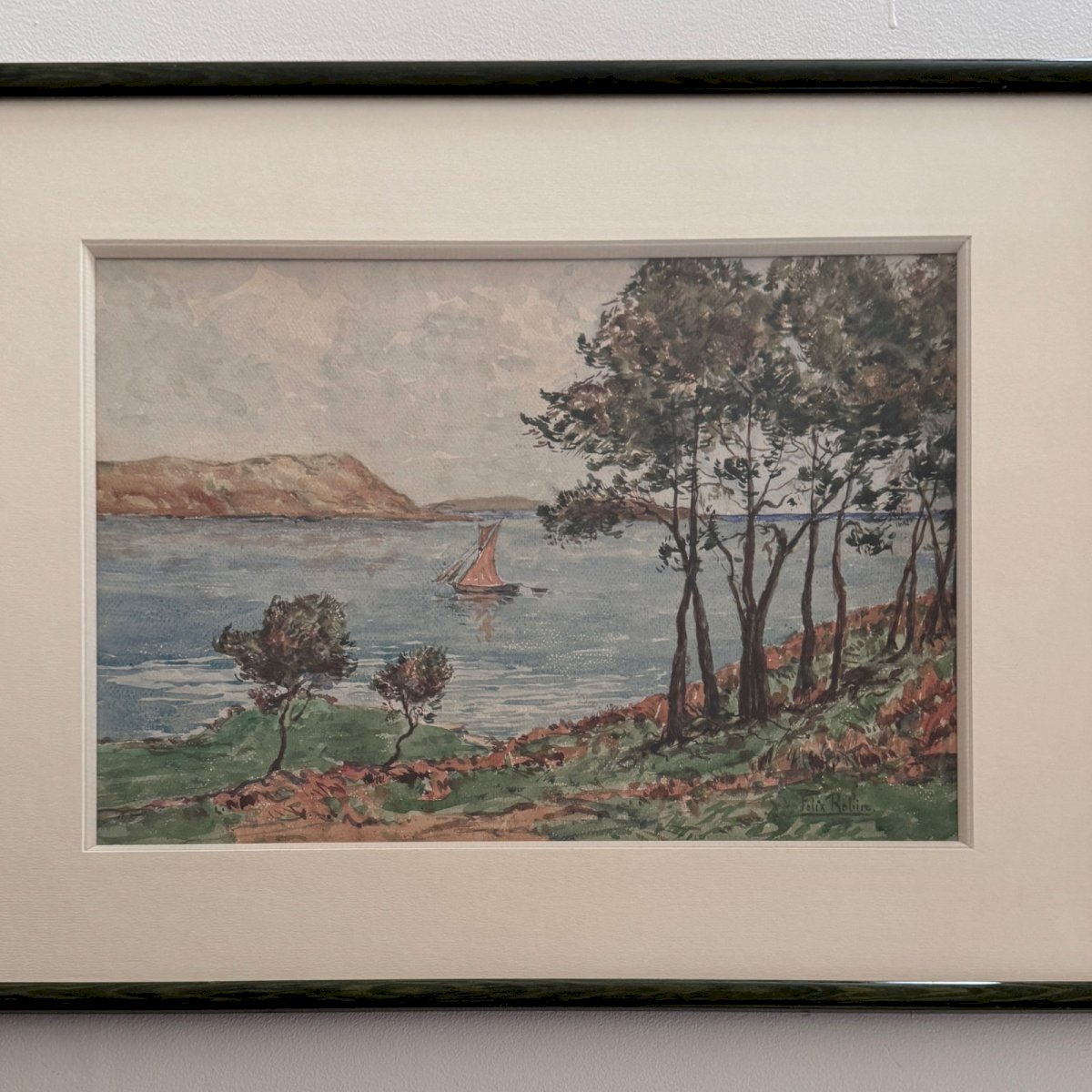 Watercolor on seaside paper by Félix Robin XXth A5799 This watercolor is of fine craftsmanship, expertly executed. Overall, it is in good general condition, although we note some small stains on the paper. Our photos allow you to appreciate the quality of the work. For the condition, please refer to the detailed photos. Feel free to zoom in. The photos are an integral part of the description. Dimensions: - Frame Height: 44.2 cm Width: 59 cm Thickness: 1.8 cm - Artwork Height: 27.5 cm Width: 41 cm I remain at your disposal for any questions. Authenticity: Unknown Weight: Unknown Type: Watercolor Height: 44.2 cm Style: Not specified Genre: Unknown Length: cm Features: Framed, Signed Width: 59 cm Theme: Seascape, Boat Artist: Félix Robin