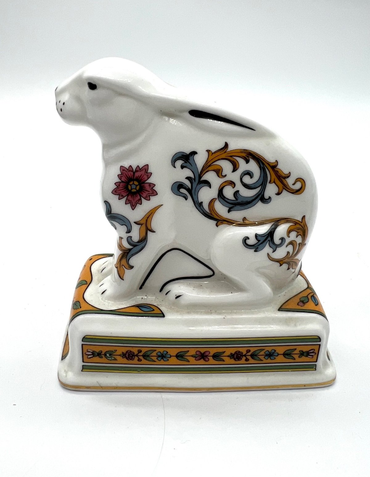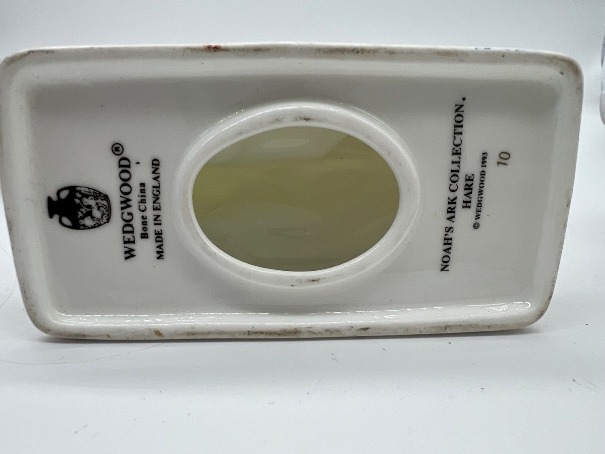 Beautiful duo of fine English porcelain (Bone China) figurines from the "Noah's Ark" collection issued by Wedgwood in 1993. Each animal is richly hand-decorated in a style inspired by Victorian ceramics and Noah's Ark motifs. The hare and the toucan rest on their decorated base and bear the Wedgwood England mark with the year 1993 on the reverse. Details: Manufacturer: Wedgwood, England Collection: Noah's Ark (1993 edition) Material: Bone China Dimensions: Hare: 19 cm x 8 cm x 4 cm Toucan: 12 cm x 5 cm x 4 cm Condition: excellent overall condition, no chips or restoration. Charming collectible pieces, perfect for a display case or table decor. Wedgwood, Noah's Ark, bone china, English porcelain, animal figurines, collectible Wedgwood, hare, toucan, 1990s porcelain, British design. Country of origin: United Kingdom
