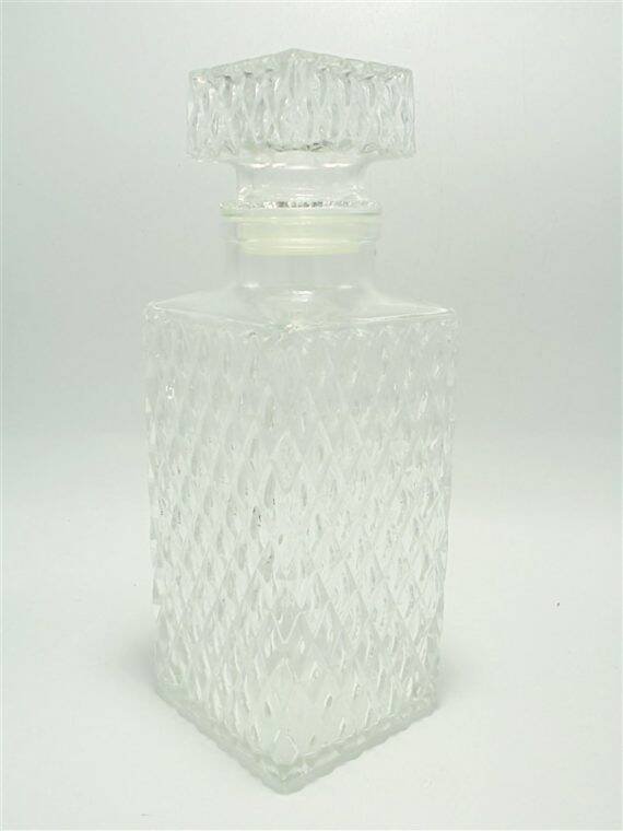 Vintage whisky decanter. Dimensions: 9 X 9 X 25 cm. Weight: 900 g. L: 9 W: 9 H: 25