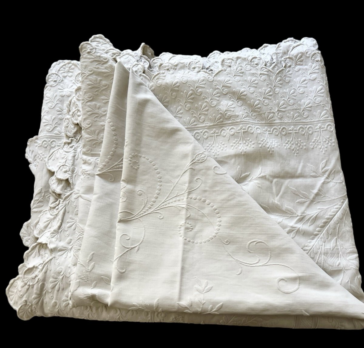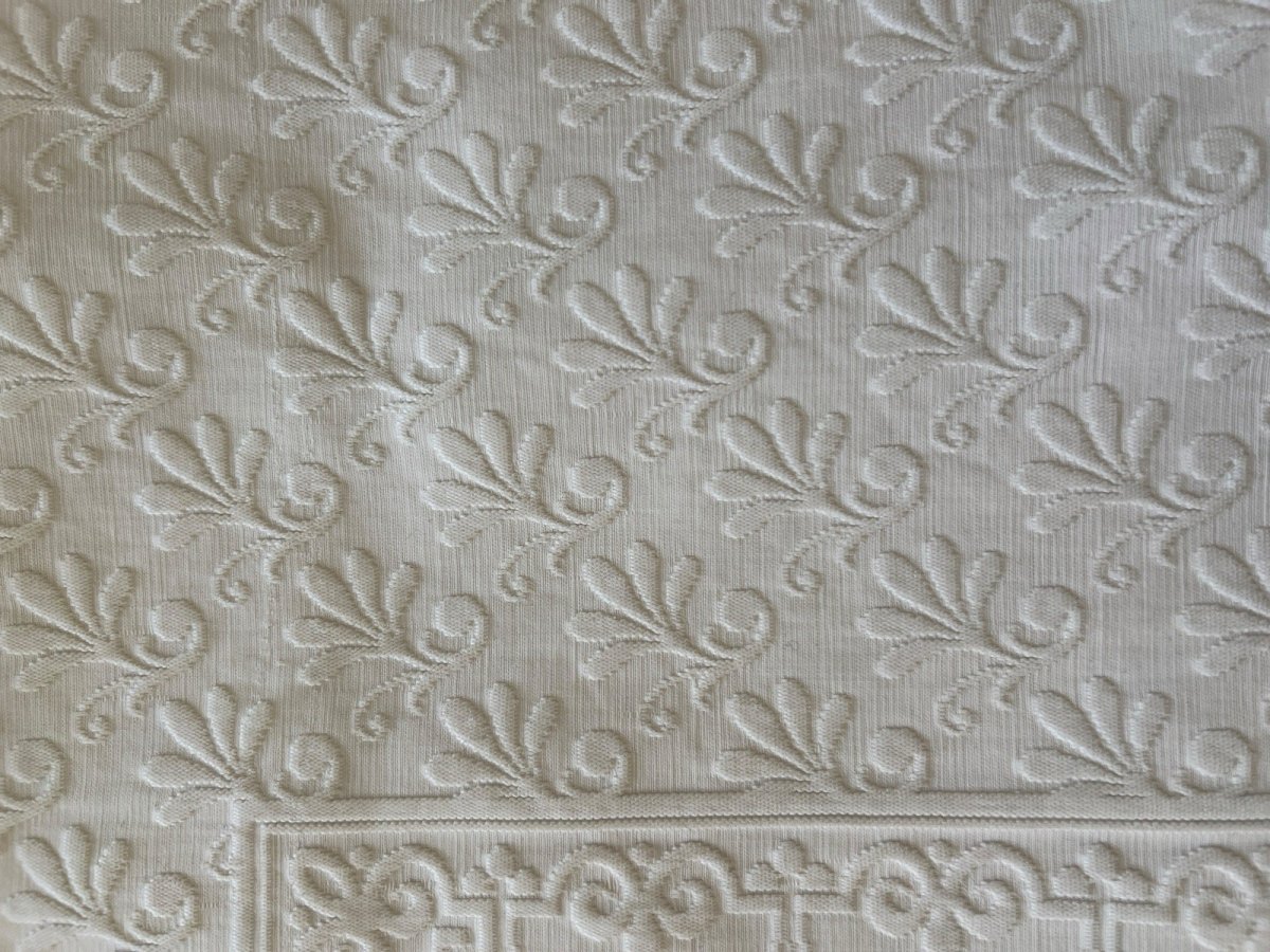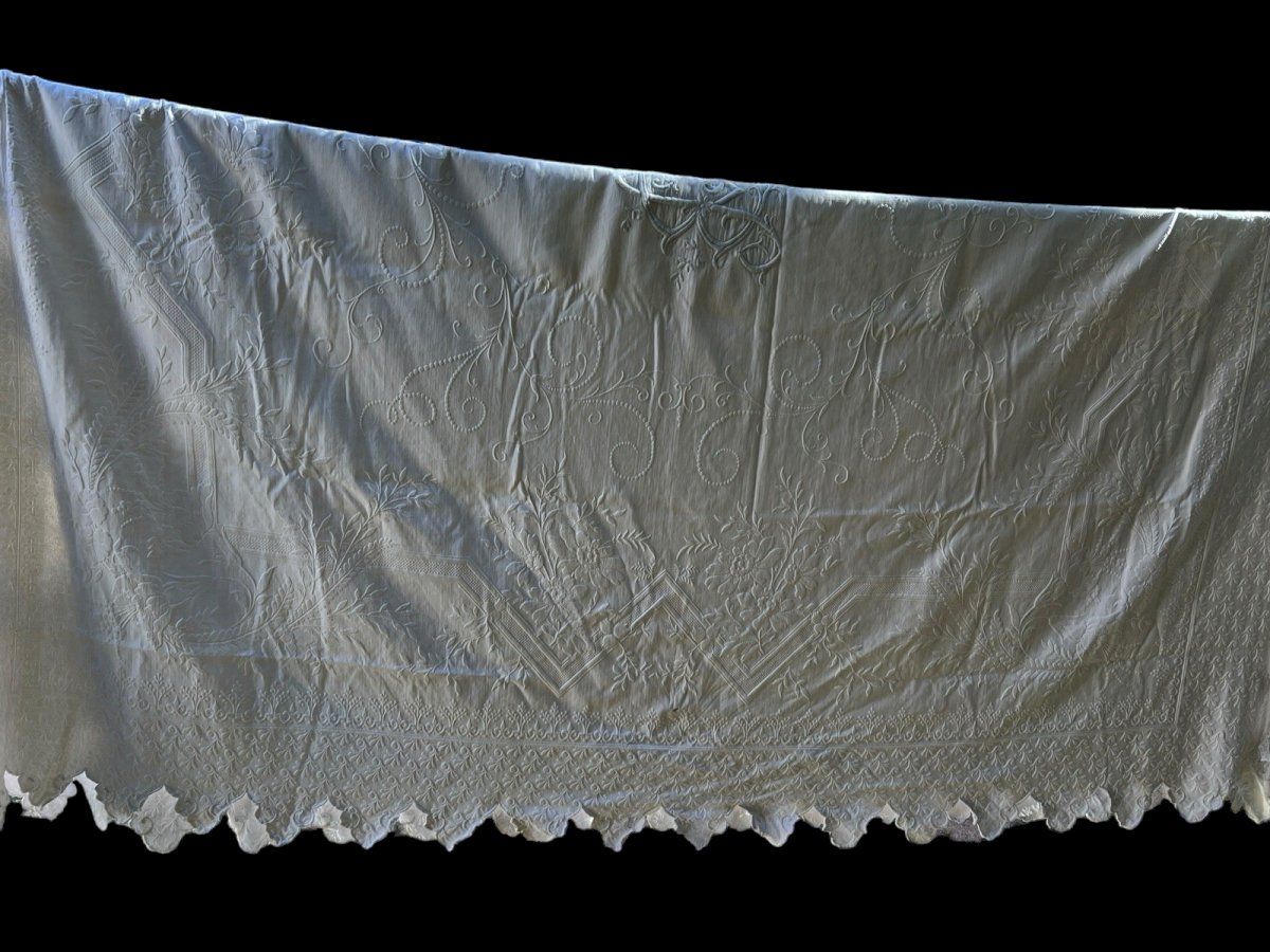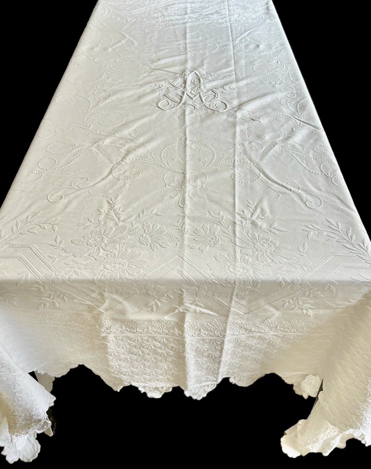 19th Century Cotton Bedspread with Embroidery. Superb 19th century cotton quilt. Excellent quality. This one is monogrammed. There is a small stain near the edge of the bedspread and 2 other tiny spots. Otherwise in good antique condition. Dimensions approximately 235 cm by 210 cm. Weight approximately 1.9 kg. Type: Bedspread Material: Cotton Color: White Period: 19th Century Use: Furniture Weight: 1.9 Kg Origin: France Country of origin: France