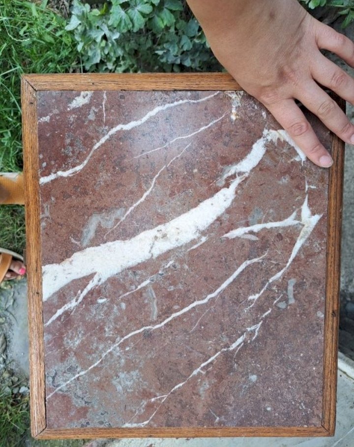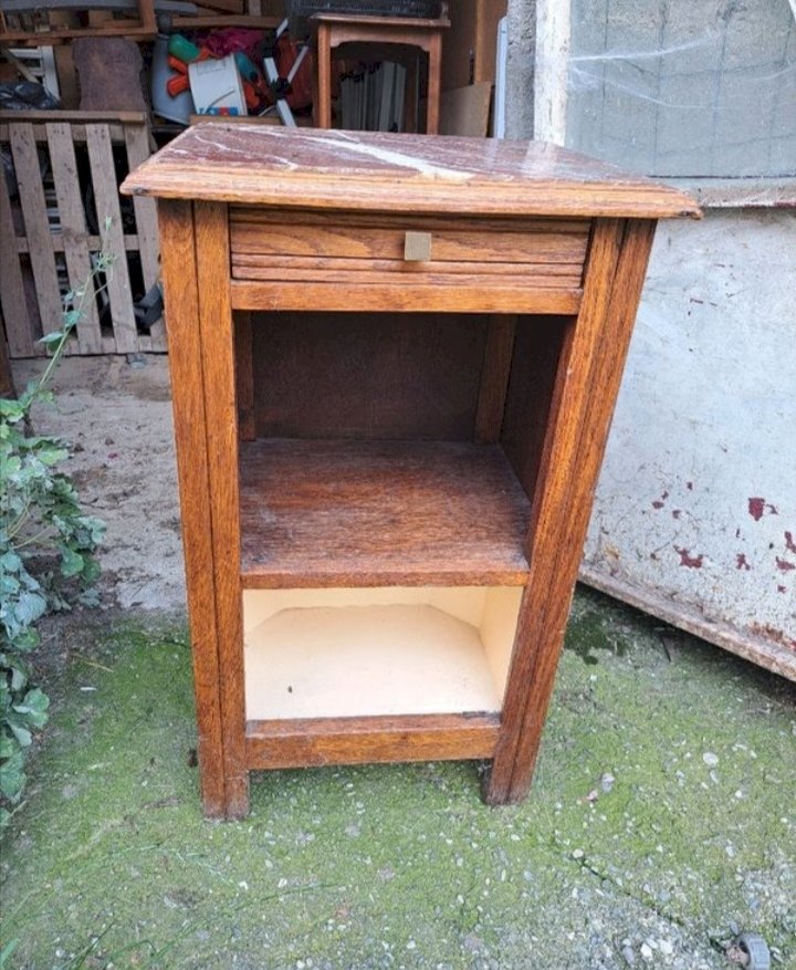Wooden bedside table with a marble top, perfect for adding an elegant and vintage touch to your bedroom.