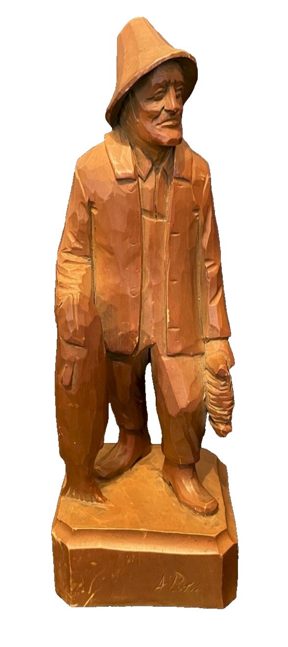 wood sculpture popular art fisherman Breton signed A Peltié decor Brittany