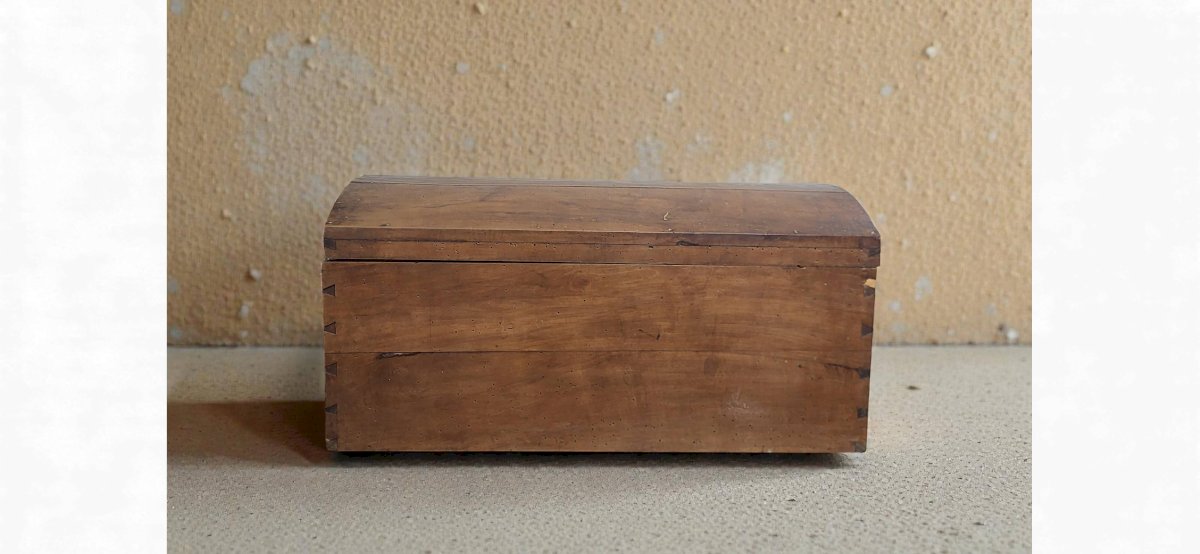 Wood storage chest / trunk, curved. Height 18 cm Total height 26 cm Dimensions 35*52 cm In good condition / Signs of use and age. Careful packaging and fast delivery. L: 52 W: 35 H: 26