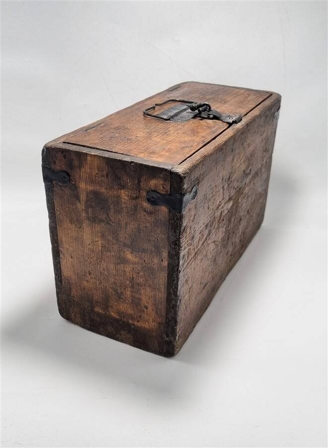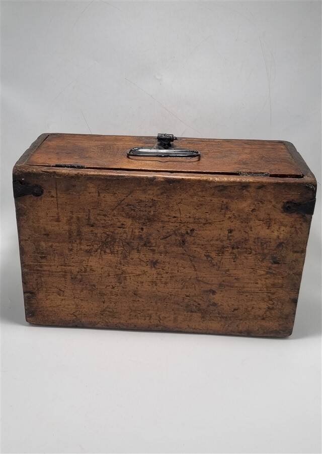 Vintage wooden suitcase. Dimensions: 37 x 16.5 x H 23.5 cm Weight: 2 kg L: 37 W: 16.5 H: 23.5