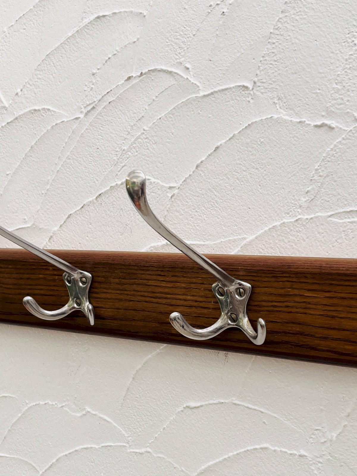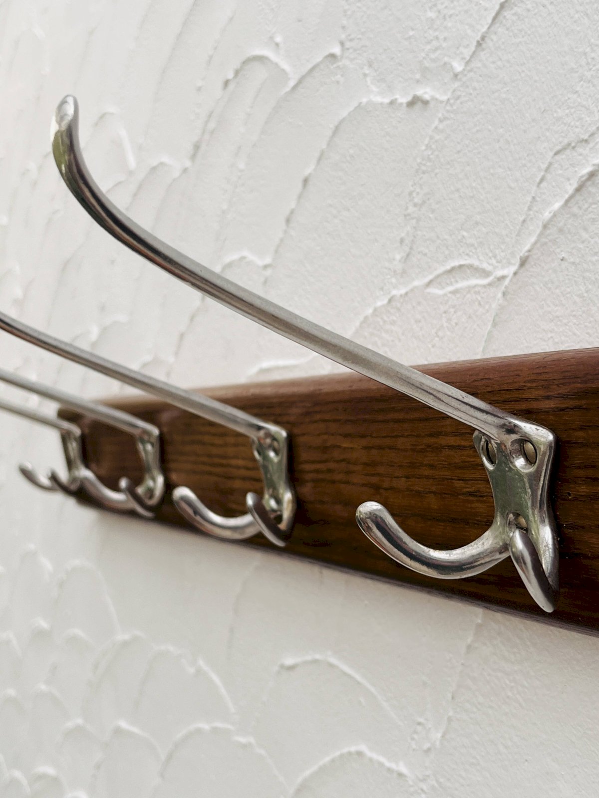 This elegant wooden coat rack combines functionality and style, perfect for an entrance or hallway.