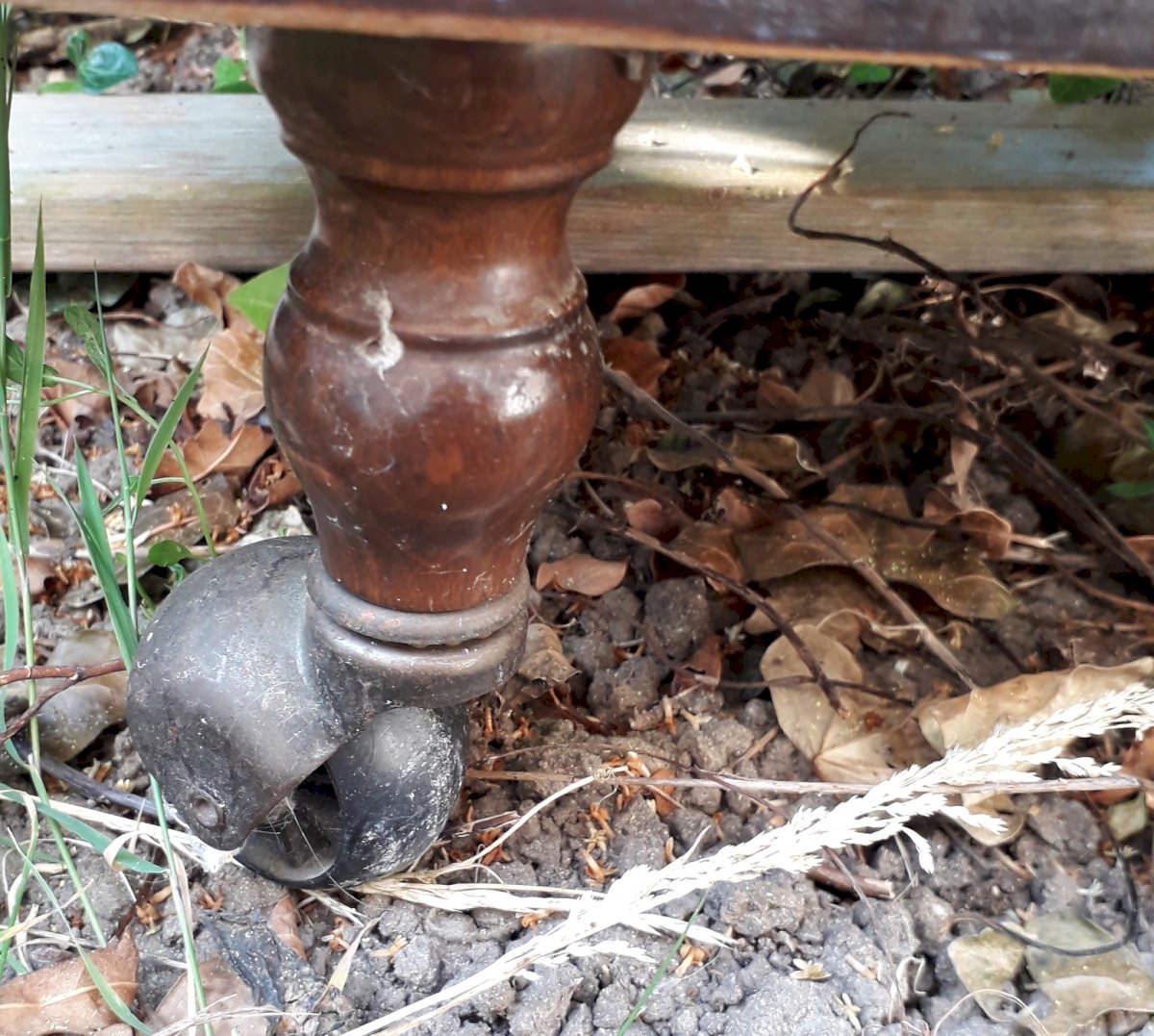 Large planter on wheels, made of wood, with a metal receptacle for placing plants.