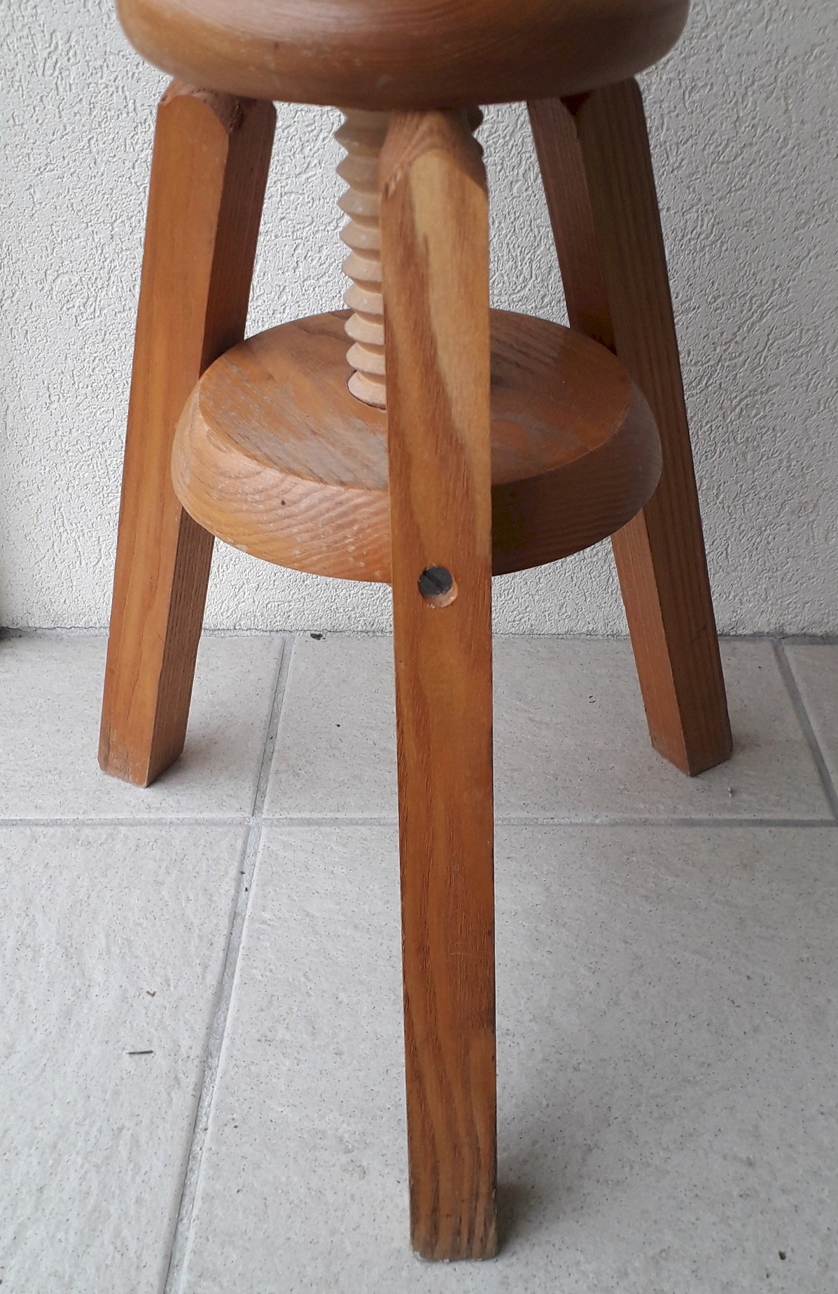 Dimensions: height at lowest 50 cm, at highest 65 cm, seat diameter 28 cm. Weight 4 kg.