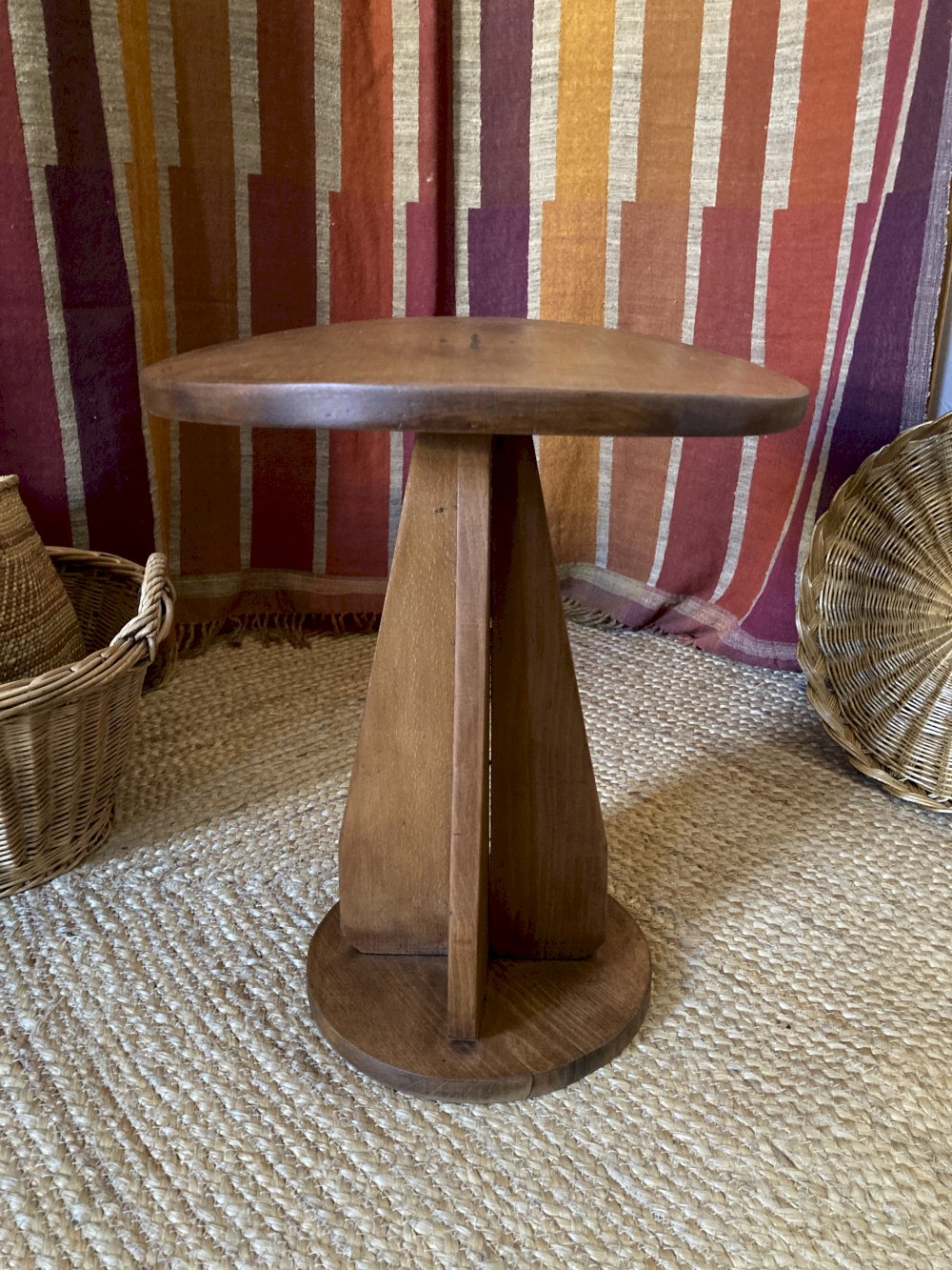 Wooden stool with a convex seat
