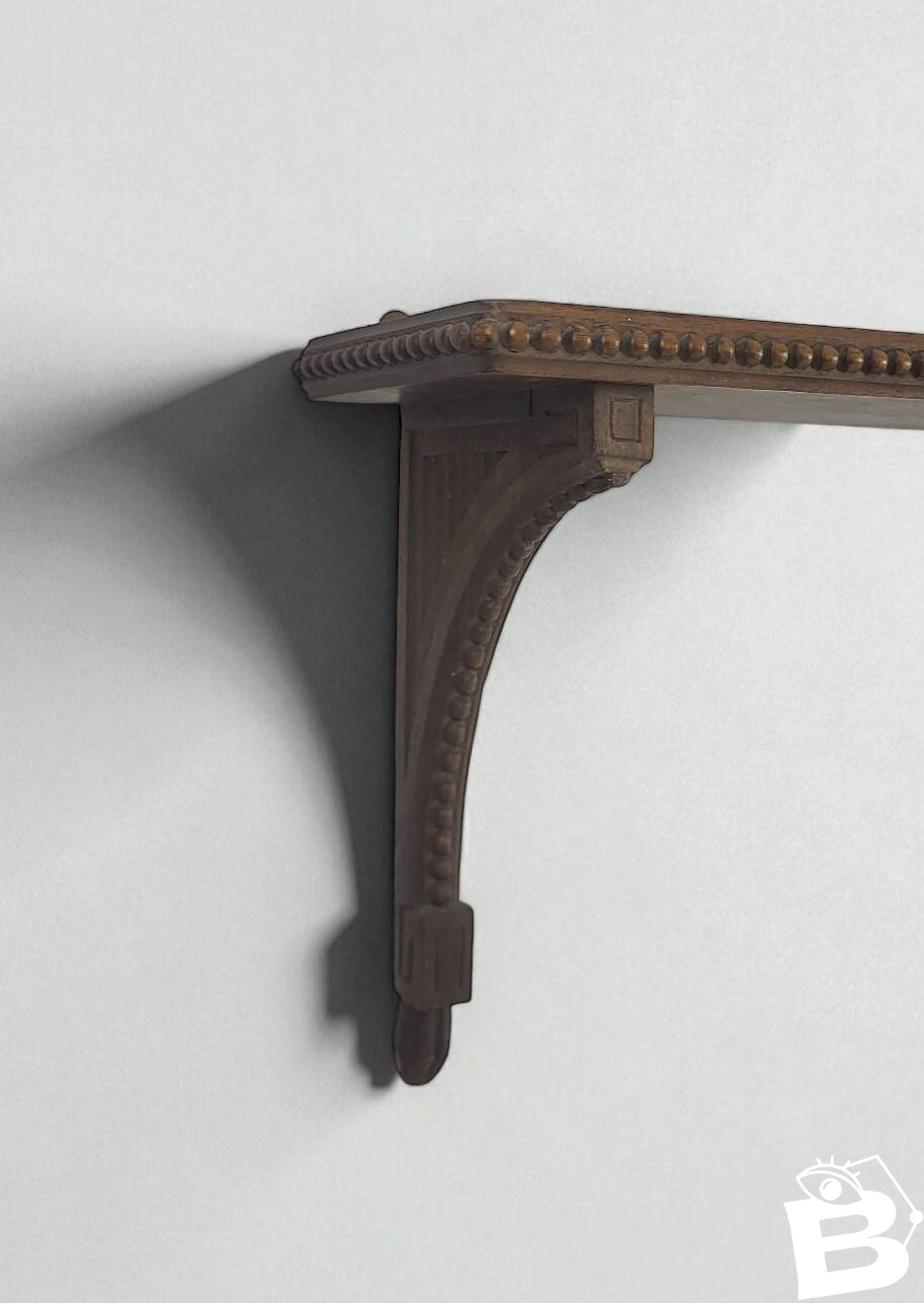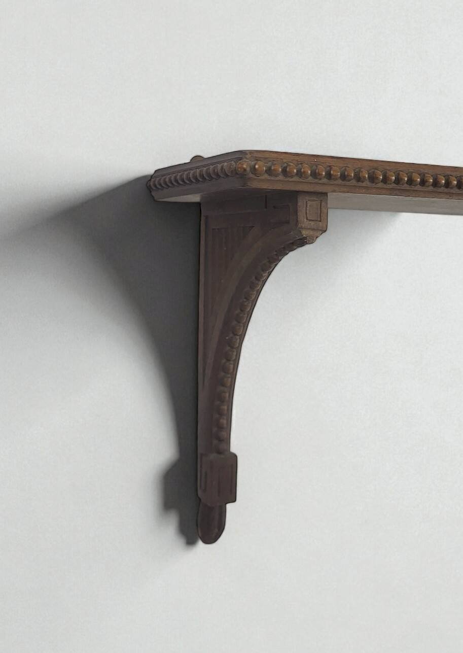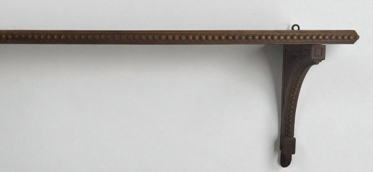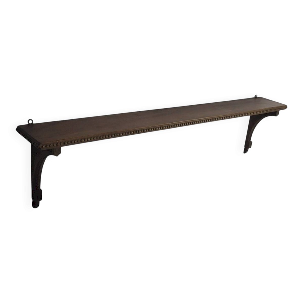 Wooden wall shelf, pearl decor. Length 80 cm. Height 20 cm. Depth 10.3 cm. In good condition / Normal signs of use and age. Careful packaging and fast delivery. L: 80 W: 10 H: 20