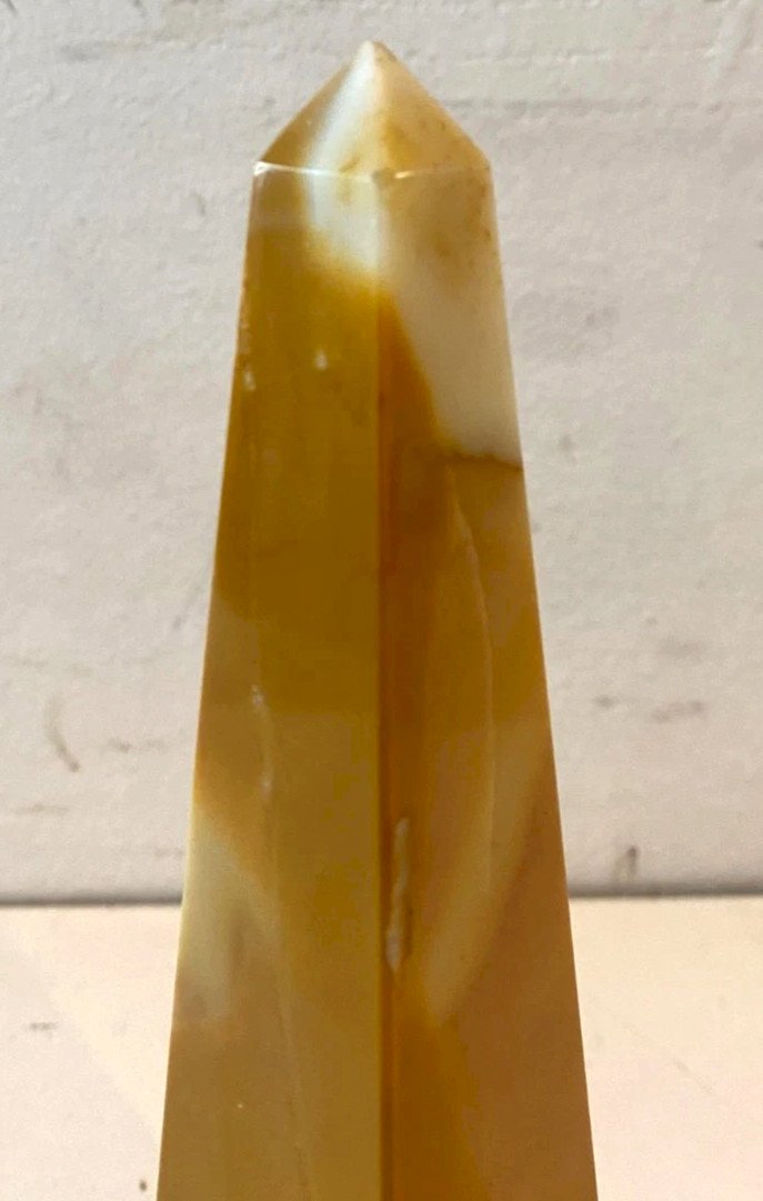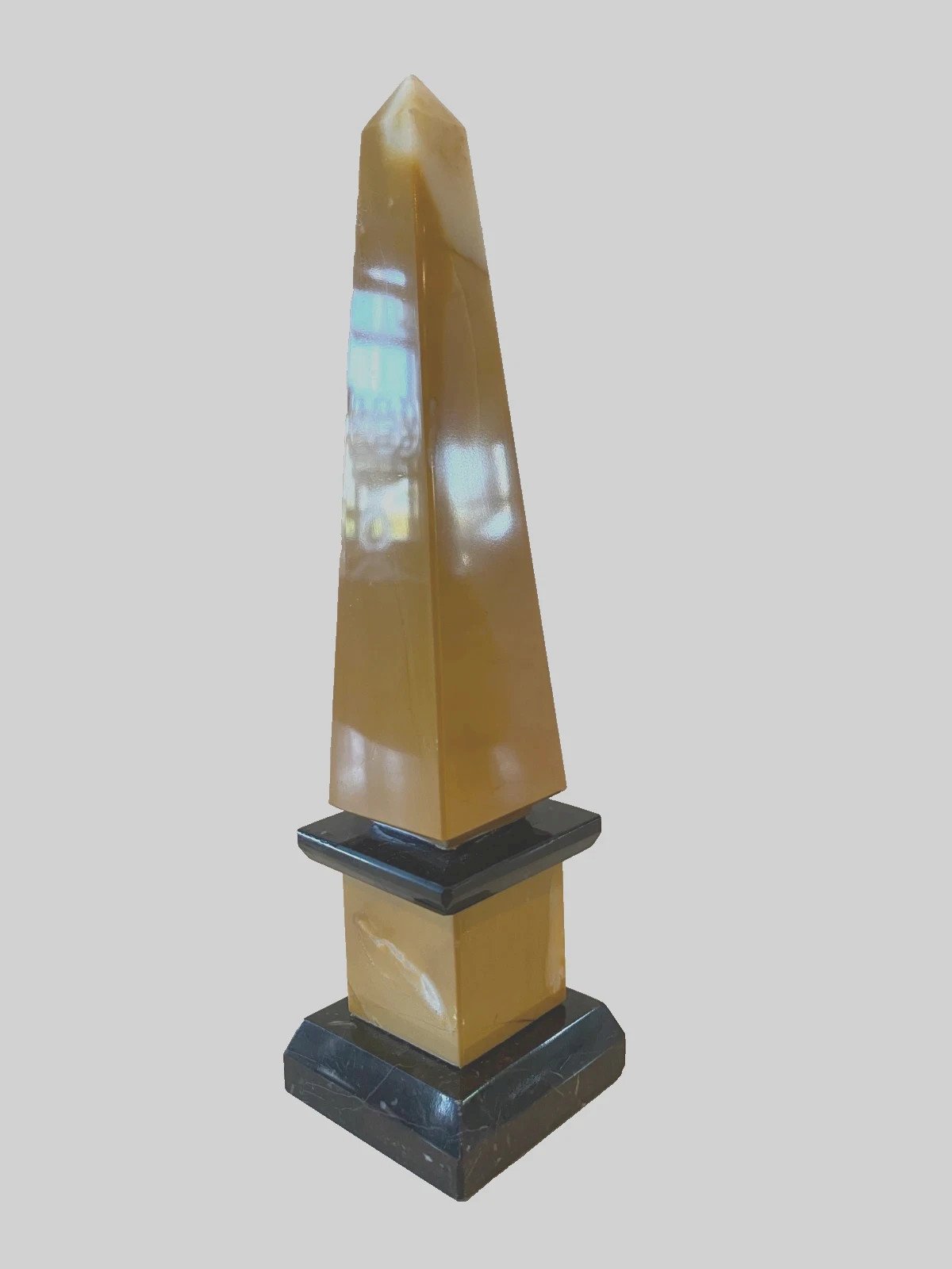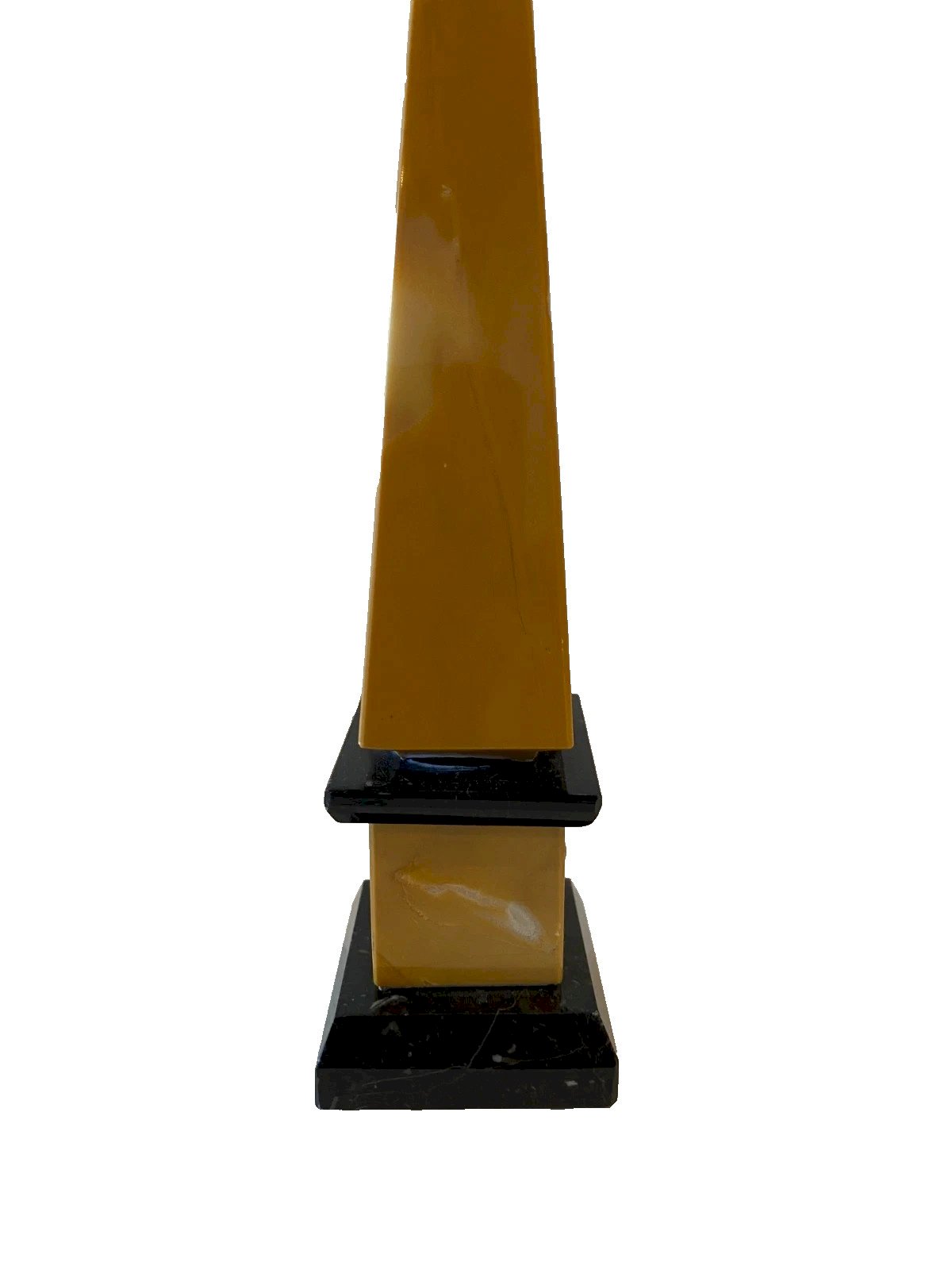 Yellow Siena and black marble obelisk Object carved from a block of marble Good condition Dimensions H 22.5 x W 7 x D 6 cm XX century Type: Showcase object, Decorative Origin: France Country of manufacture: France Height: 22.5 Material: Marble Style: Napoleon III Length: 7 Width: 6