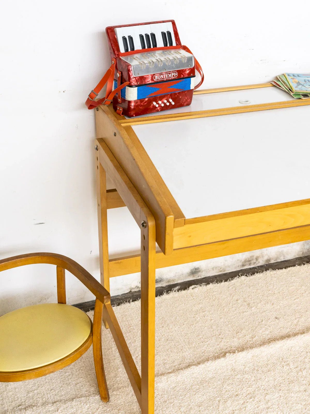 Discover this vintage 80s desk, featuring an authentic and practical design, ideal for retro furniture enthusiasts. Its white laminated top provides a resilient and elegant surface, perfect for adding a touch of brightness to your workspace. This period piece, with its timeless charm, is ready to find its place in your interior. Its unique feature? An opening system from the top that reveals a discreet storage space to organize your supplies. Web exclusive, the meeting will take place at your home! Length: 90 cm Width: 63 cm Height: 80 cm Condition: Used: Item that has been used. Item showing some signs of superficial wear, fully operational and functioning correctly. It may be a demonstration model or an item returned to the store after a short period of use. Any imperfections. Brand: Debongout Type: Thrifted product Material: Wood Style: Contemporary Custom: Desks