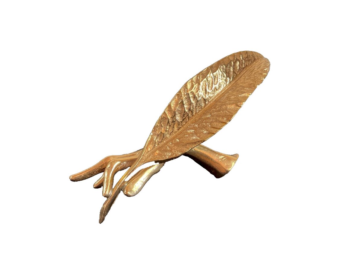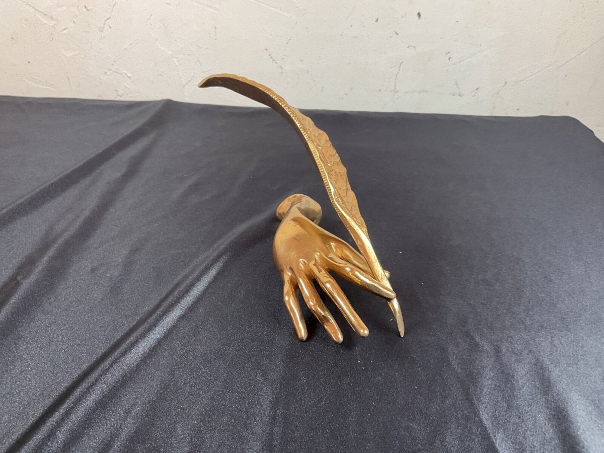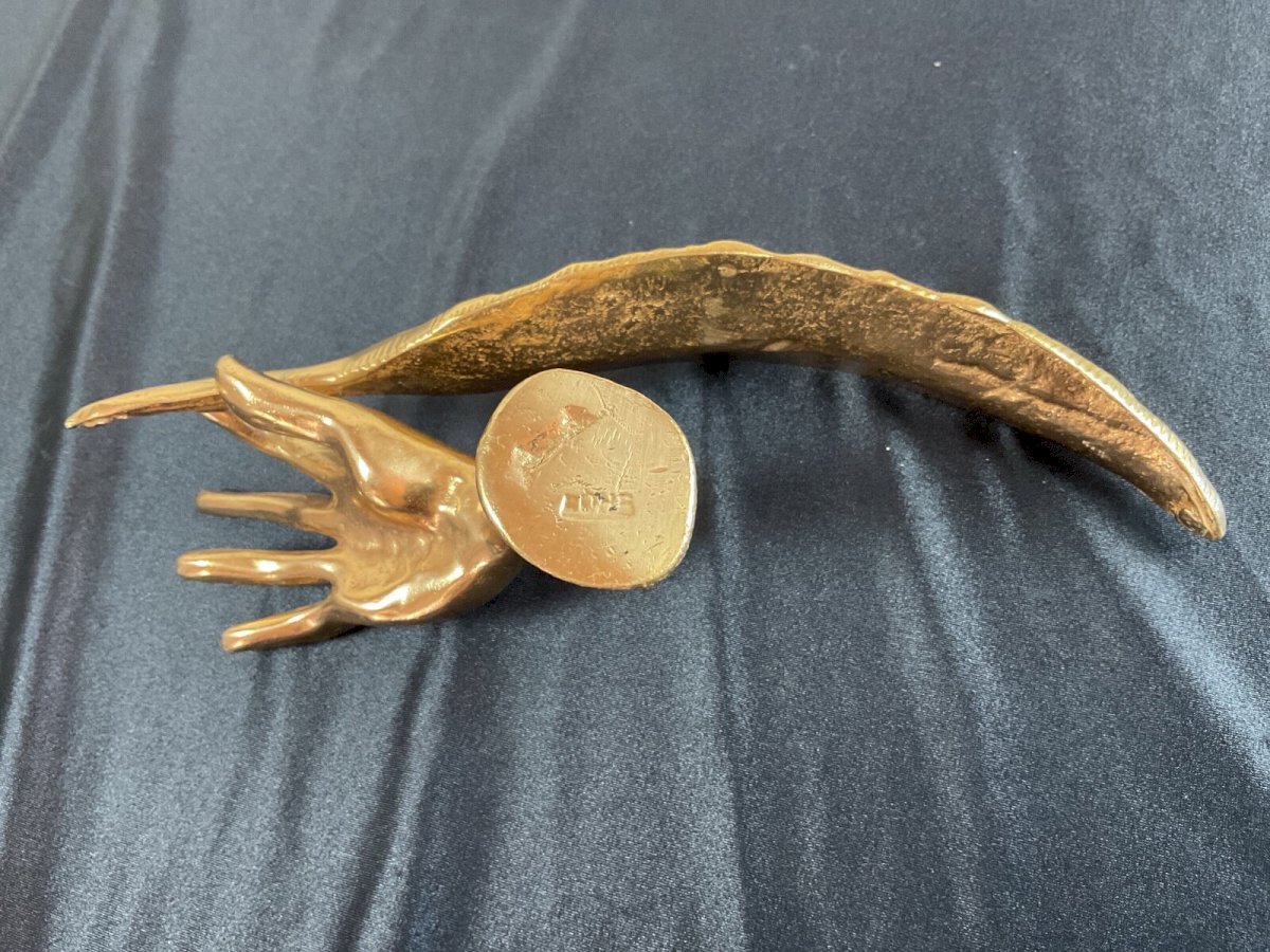 Yves Lohé. Born in 1947. Hand with a pen. Bronze sculpture signed Lohe on the hand. Dimensions: 17 x 17 cm. Authenticity: Original Material: Bronze Dimension (cm): From 10 to 30 Theme: Abstract Artist: Yves Lohé