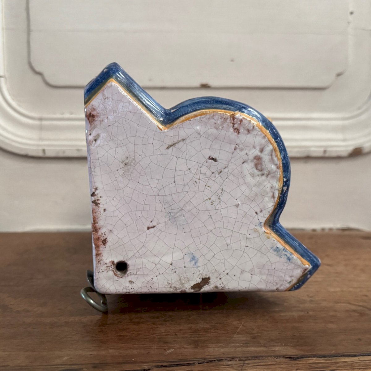 Encoignure en faïence de Malicorne représentant un chevalier XIXe M3618 Cette encoignure en faïence est de belle facture, elle est en fort relief.  Elle porte une étiquette ancienne indiquant "Fabrique Pouplard et Béatrix XIXe - vers 1850 Collection Personnelle de M. Porquier". Elle est en bon état général, notons un petit défaut de cuisson, une légère usure de l'émail. Nos photos vous permettent d'apprécier la qualité de l'objet. Pour l'état, merci de bien détailler les photos. N'hésitez pas à zoomer . Les photos font partie intégrante de la description. Dimensions : Hauteur : 23 cm Largeur : 15 cm Profondeur : 10 cm   Je reste à votre disposition pour toute question. Type:Objet de vitrine, Décoratif Origine:France Sous-type:Encoignure Hauteur:23 cm Matière:Faïence Longueur:cm Largeur:15 cm
