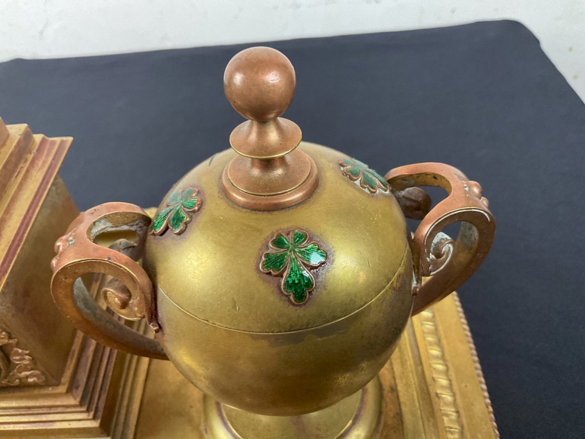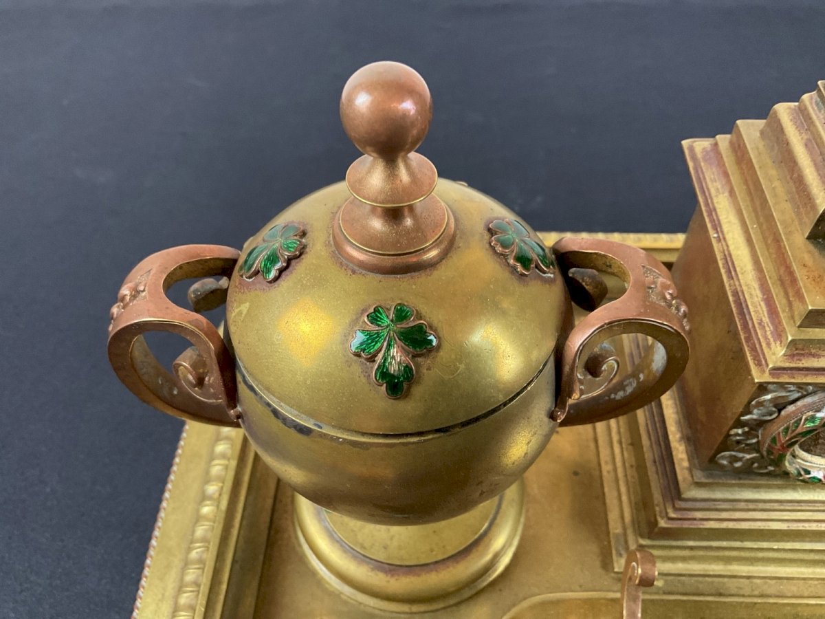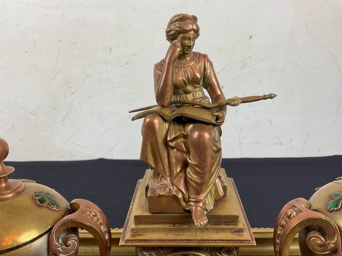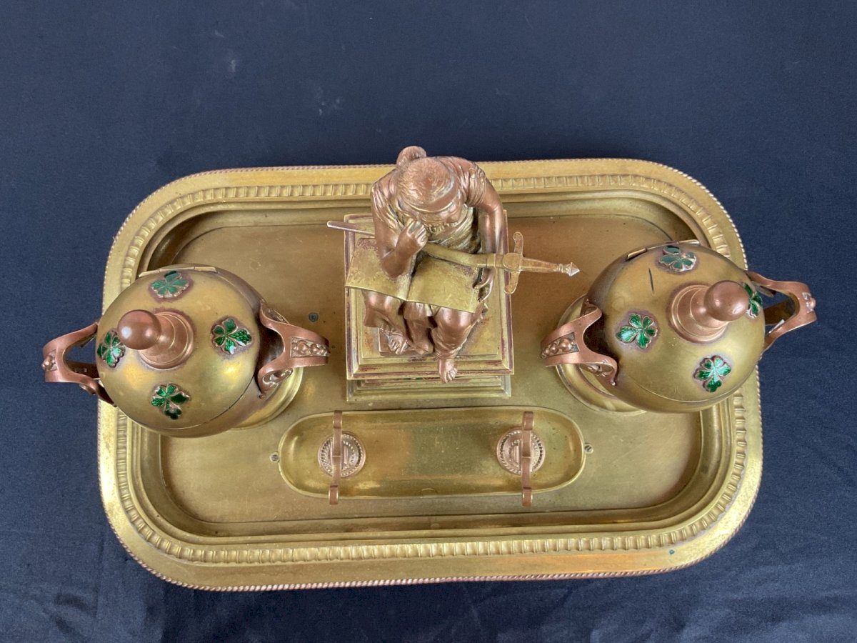 Encrier bronze guilloché personnages XIXème Dimension : 37 x 24 cm Hauteur : 25 cm Authenticité:Original Type:Objet de vitrine, Décoratif Etat:Occasion Origine:France Sous-type:Encrier, Plumier Matière:Bronze Style:Napoléon, Empire