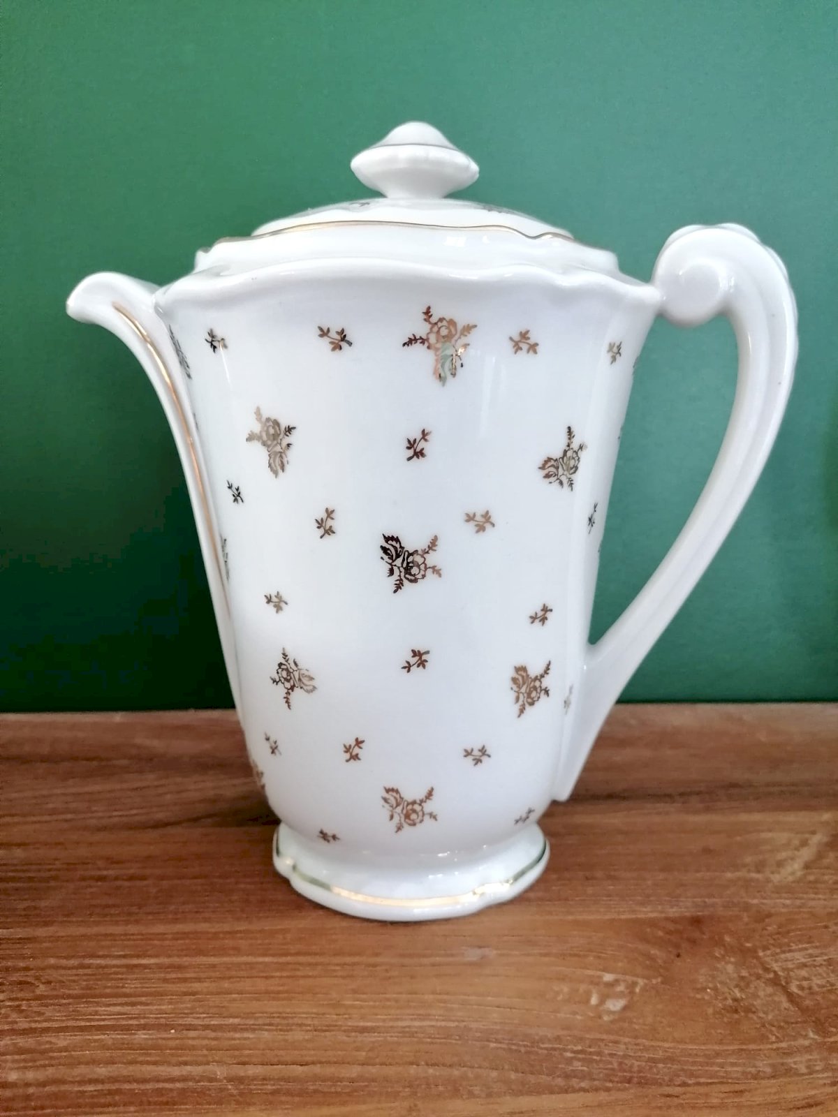 Décoré de petites fleurs dorées, datant des années 60, en parfait état. Idéal pour sublimer vos pauses café ou thé, ou comme pièce décorative élégante sur une étagère ou un buffet,apportant une touche vintage et raffinée à votre intérieur.