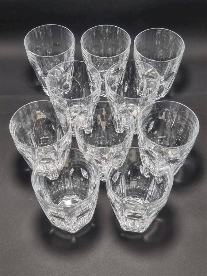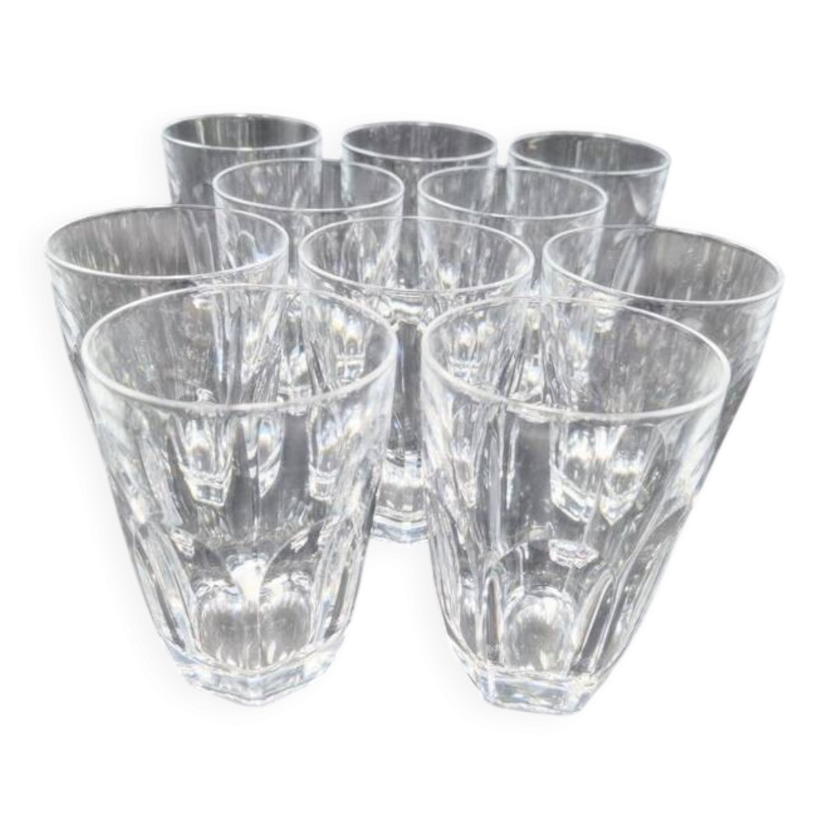 Ensemble de 10 verres en cristal, dans l’esprit du modèle Harcourt de chez Baccarat.Dimensions: environ 10.5 X 8 cm.Poids du lot: 2.6 kg.