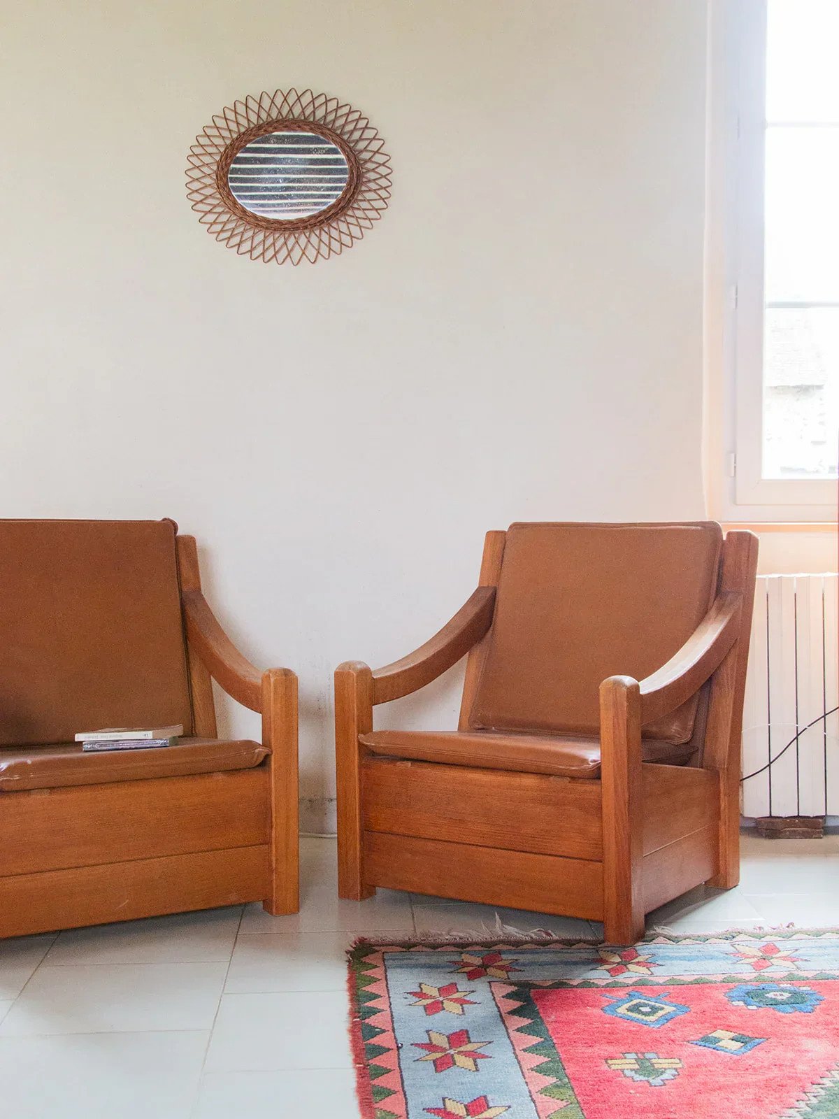 Découvrez ce fauteuil au style élégant qui apportera du charme à votre intérieur. Son assise et son dossier en cuir camel/marron sont très confortables et peuvent s’enlever facilement. Sa structure en bois carrée et solide garantit une bonne durabilité. Ses accoudoirs légèrement courbés ajoutent une touche d’élégance. Vendu à l'unité, deux quantités sont disponibles ! Longueur : 66 cm Profondeur : 45 cm Hauteur : 77 cm Hauteur d'assise : 33 cm État:Occasion: Objet ayant été utilisé. Objet présentant quelques marques d'usure superficielle, ...Occasion: Objet ayant été utilisé. Objet présentant quelques marques d'usure superficielle, entièrement opérationnel et fonctionnant correctement. Il peut s'agir d'un modèle de démonstration ou d'un objet retourné en magasin après une courte période d'utilisation. les éventuelles imperfections. Couleur:Multicouleur Hauteur:Bois, Cuir Largeur:Fauteuils et chauffeuses Marque:Debongout Type:Produit chiné Matériau:Bois, Cuir Style:Campagne