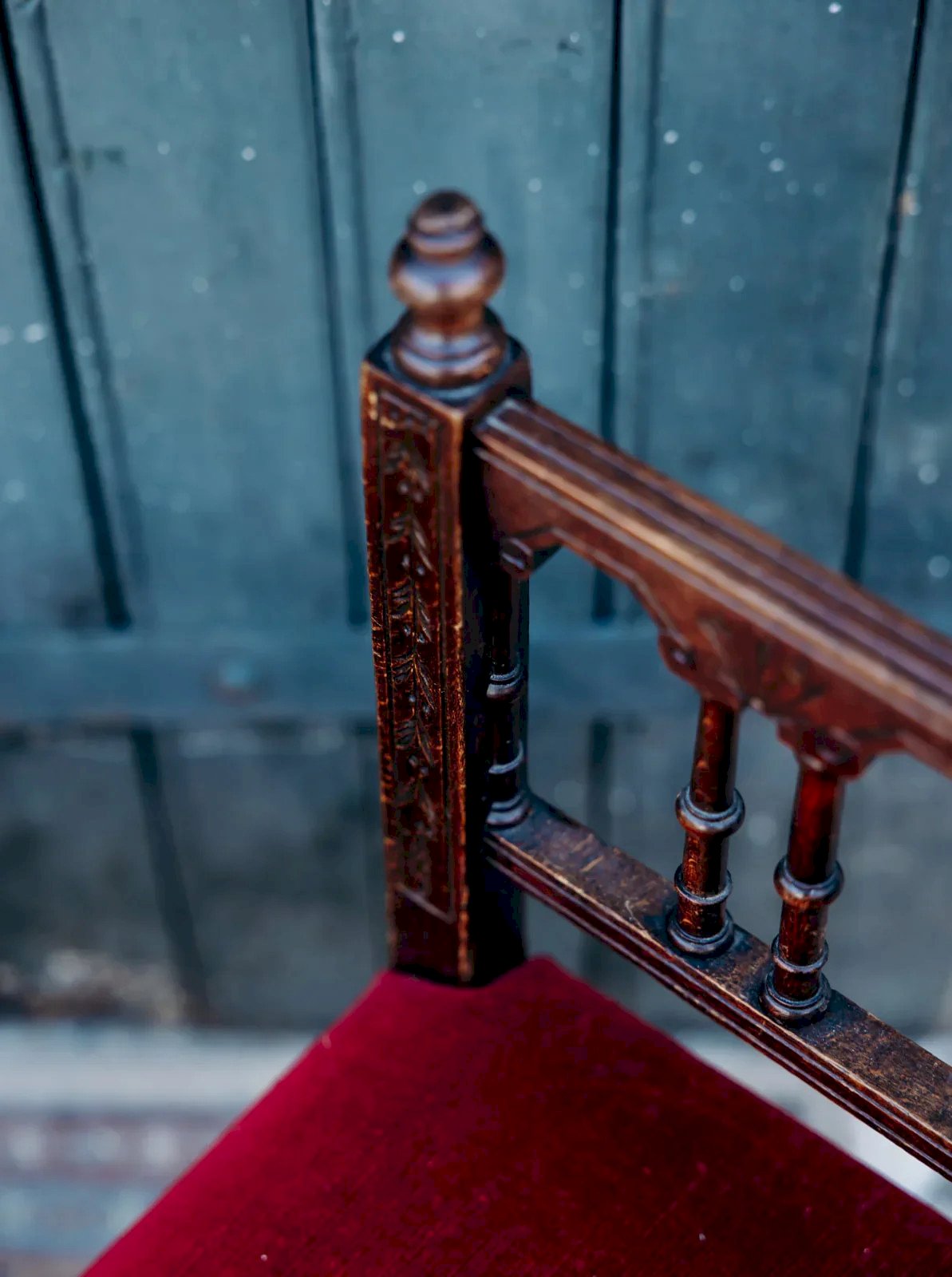 Ce fauteuil d’angle en bois sombre séduit par le travail raffiné de sa structure et son allure pleine de caractère. Son assise en velours rouge apporte une touche chaleureuse et élégante, idéale pour créer une ambiance cosy et sophistiquée. Quelques marques et piqûres sur le bois témoignent de son histoire, mais il a été traité pour préserver sa beauté et sa solidité. Une pièce unique qui marie charme ancien et confort. Largeur : 43 cm Hauteur : 64 cm Hauteur d'assise : 37 cm Profondeur : 43 cm Profondeur de l'assise : 43 cm État:Occasion: Objet ayant été utilisé. Objet présentant quelques marques d'usure superficielle, ...Occasion: Objet ayant été utilisé. Objet présentant quelques marques d'usure superficielle, entièrement opérationnel et fonctionnant correctement. Il peut s'agir d'un modèle de démonstration ou d'un objet retourné en magasin après une courte période d'utilisation. les éventuelles imperfections. Couleur:Multicouleur Hauteur:Bois, Velours Largeur:Fauteuils et chauffeuses Marque:Debongout Type:Produit chiné Matériau:Bois, Velours Style:Campagne
