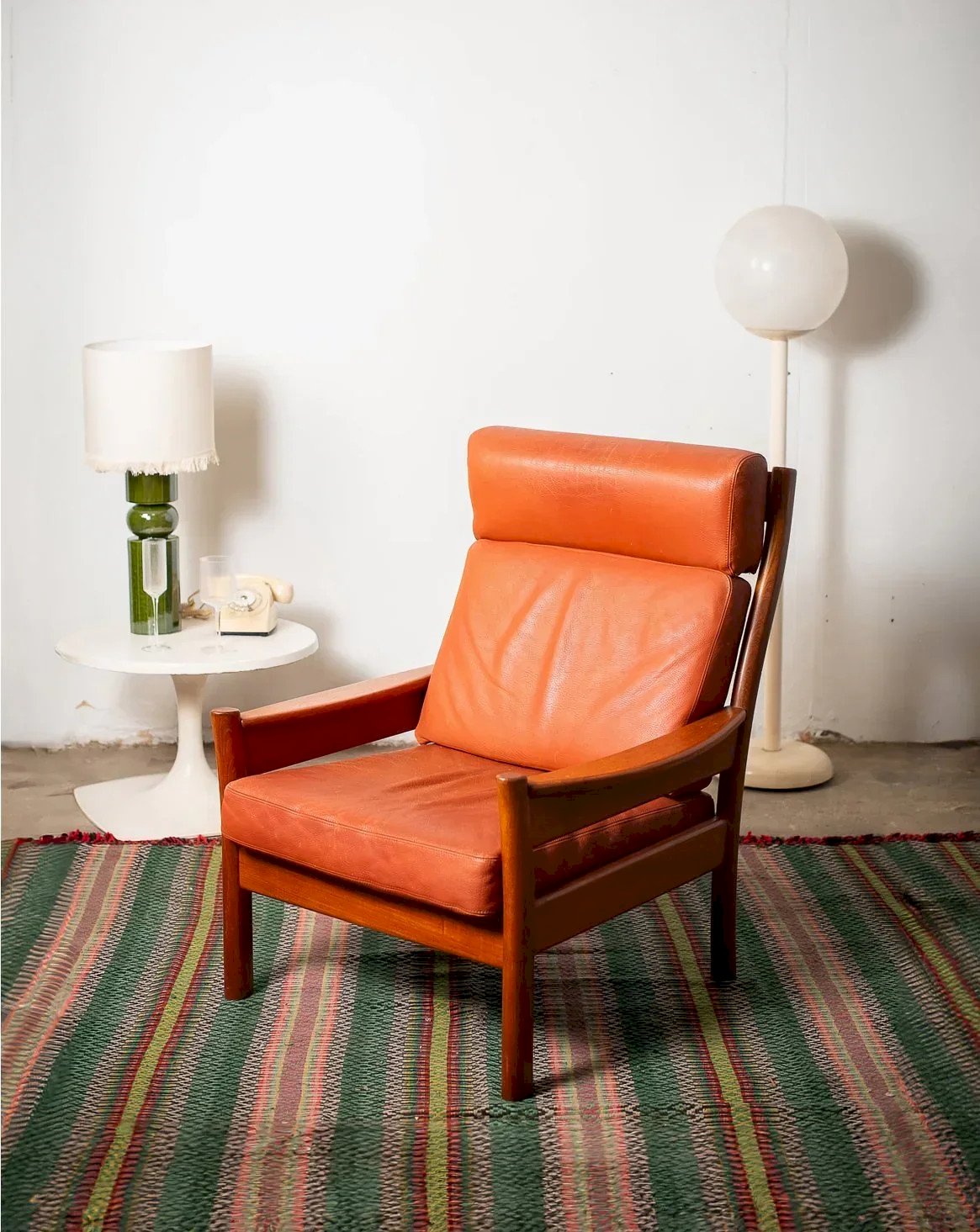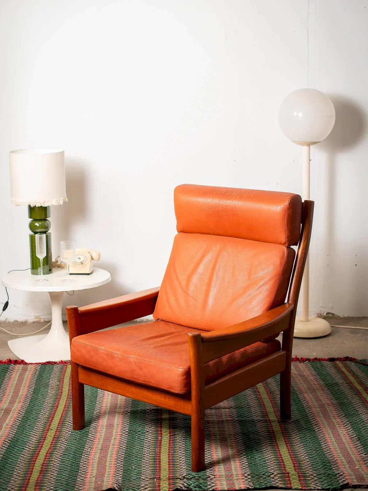 Ce fauteuil au charme vintage nous a séduit par sa structure en bois vernis et son assise en cuir orangé. Les accoudoirs en bois, ornés de jolis empiècements, renforcent son allure authentique. Idéal pour un coin lecture ou comme pièce d'appoint dans un salon, ce fauteuil allie élégance et confort tout en apportant une touche rétro à votre intérieur. À noter que le cuir présente quelques traces et marques du temps. Largeur : 74 cm Hauteur : 97 cm Hauteur d'assise : 41 cm Profondeur : 49 cm État:Occasion: Objet ayant été utilisé. Objet présentant quelques marques d'usure superficielle, ...Occasion: Objet ayant été utilisé. Objet présentant quelques marques d'usure superficielle, entièrement opérationnel et fonctionnant correctement. Il peut s'agir d'un modèle de démonstration ou d'un objet retourné en magasin après une courte période d'utilisation. les éventuelles imperfections. Couleur:Multicouleur Hauteur:Bois, Cuir Largeur:Fauteuils et chauffeuses Marque:Debongout Type:Produit chiné Matériau:Bois, Cuir Style:Campagne