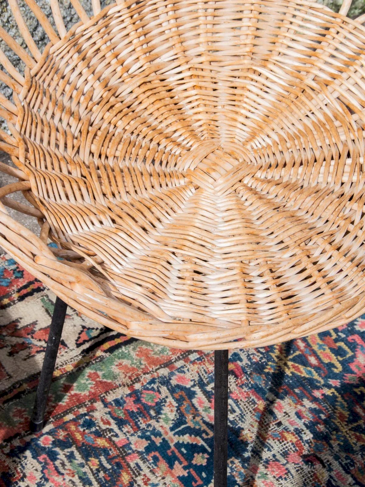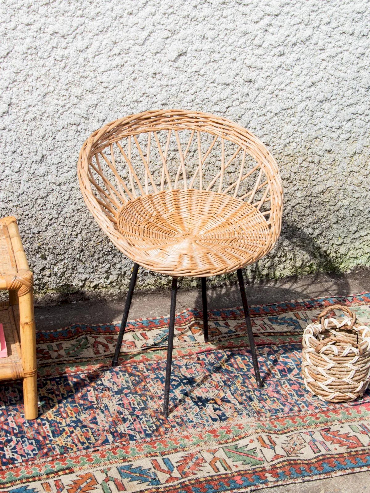 Offrez-vous cette chaise en osier au pied en métal noir, une pièce élégante et chaleureuse qui s'intègre parfaitement dans tous les intérieurs. Son tissage en osier naturel offre un confort optimal tout en ajoutant une touche cosy à votre décoration. Son pied, robuste et moderne, assure une stabilité parfaite. Idéale pour votre salle à manger ou votre espace extérieur, cette chaise combine style et praticité. Ajoutez une note de charme à votre mobilier avec ce produit intemporel. Hauteur : 67 cm Hauteur d'assise : 42 cm Diamètre de l'assise : 54 cm État:Occasion: Objet ayant été utilisé. Objet présentant quelques marques d'usure superficielle, ...Occasion: Objet ayant été utilisé. Objet présentant quelques marques d'usure superficielle, entièrement opérationnel et fonctionnant correctement. Il peut s'agir d'un modèle de démonstration ou d'un objet retourné en magasin après une courte période d'utilisation. les éventuelles imperfections. Couleur:Multicouleur Hauteur:Osier, Métal Largeur:Fauteuils et chauffeuses Marque:Debongout Type:Produit chiné Matériau:Osier, Métal Style:Campagne