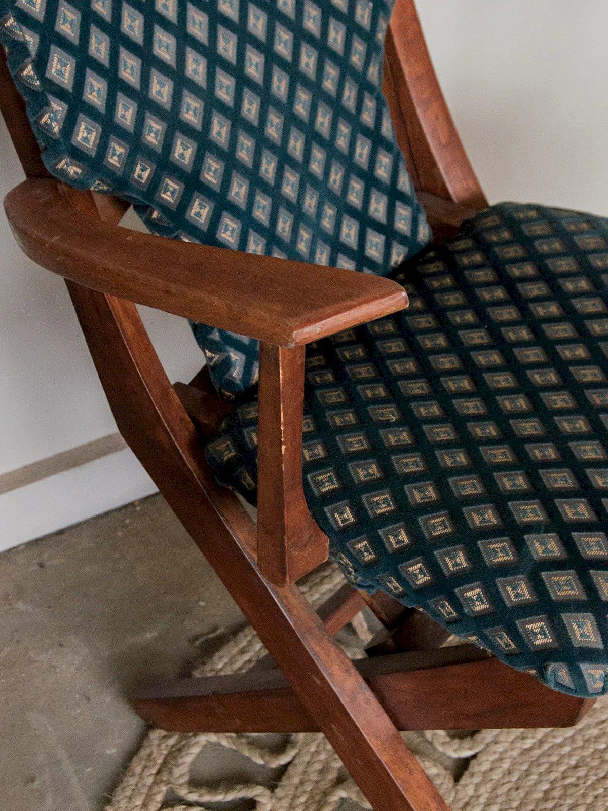 Apportez une touche d'élégance à votre intérieur avec ce fauteuil en bois et en tissu bleuté. Sa haute assise offre un confort optimal, tandis que les motifs en losanges sur le tissu ajoutent une jolie touche vintage. Les pieds croisés, à la fois robustes et stylisés, garantissent une finition esthétique. Idéal pour compléter un salon chic ou un coin de lecture, ce fauteuil allie style et confort avec brio. Longueur : 44 cm Largeur : 43 cm Hauteur : 102 cm Hauteur d'assise : 44 cm État:Occasion: Objet ayant été utilisé. Objet présentant quelques marques d'usure superficielle, ...Occasion: Objet ayant été utilisé. Objet présentant quelques marques d'usure superficielle, entièrement opérationnel et fonctionnant correctement. Il peut s'agir d'un modèle de démonstration ou d'un objet retourné en magasin après une courte période d'utilisation. les éventuelles imperfections. Couleur:Multicouleur Hauteur:Bois, Tissu Largeur:Fauteuils et chauffeuses Marque:Debongout Type:Produit chiné Matériau:Bois, Tissu Style:Campagne