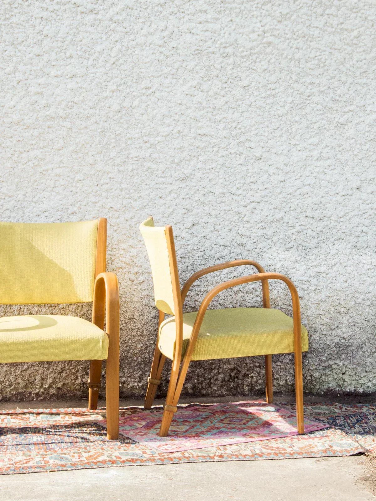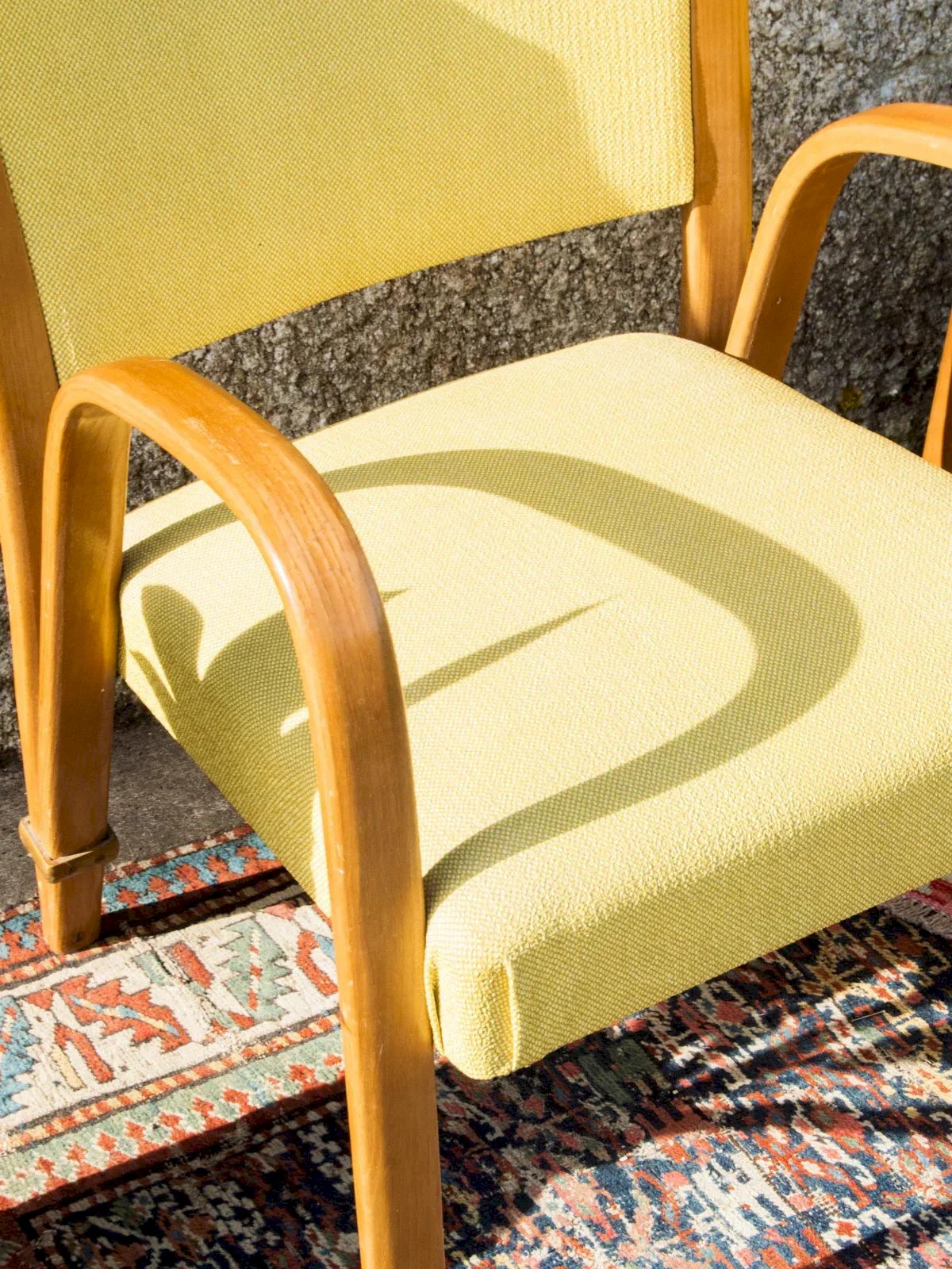 Découvrez ce fauteuil Steiner au charme vintage, avec sa garniture d'origine en tissu vert soigneusement préservée. Sa structure en bois clair met en valeur ses lignes épurées et intemporelles. De petits boutons fixent discrètement le tissu, ajoutant une finition soignée. Idéal pour un salon ou un coin lecture chaleureux. Une pièce authentique qui traverse les époques avec simplicité. Longueur : 56,5 cm Hauteur : 77 cm Hauteur d'assise : 41 cm Profondeur : 61 cm État:Occasion: Objet ayant été utilisé. Objet présentant quelques marques d'usure superficielle, ...Occasion: Objet ayant été utilisé. Objet présentant quelques marques d'usure superficielle, entièrement opérationnel et fonctionnant correctement. Il peut s'agir d'un modèle de démonstration ou d'un objet retourné en magasin après une courte période d'utilisation. les éventuelles imperfections. Couleur:Multicouleur Hauteur:Bois, Tissu Largeur:Fauteuils et chauffeuses Marque:Debongout Type:Produit chiné Matériau:Bois, Tissu Style:Campagne
