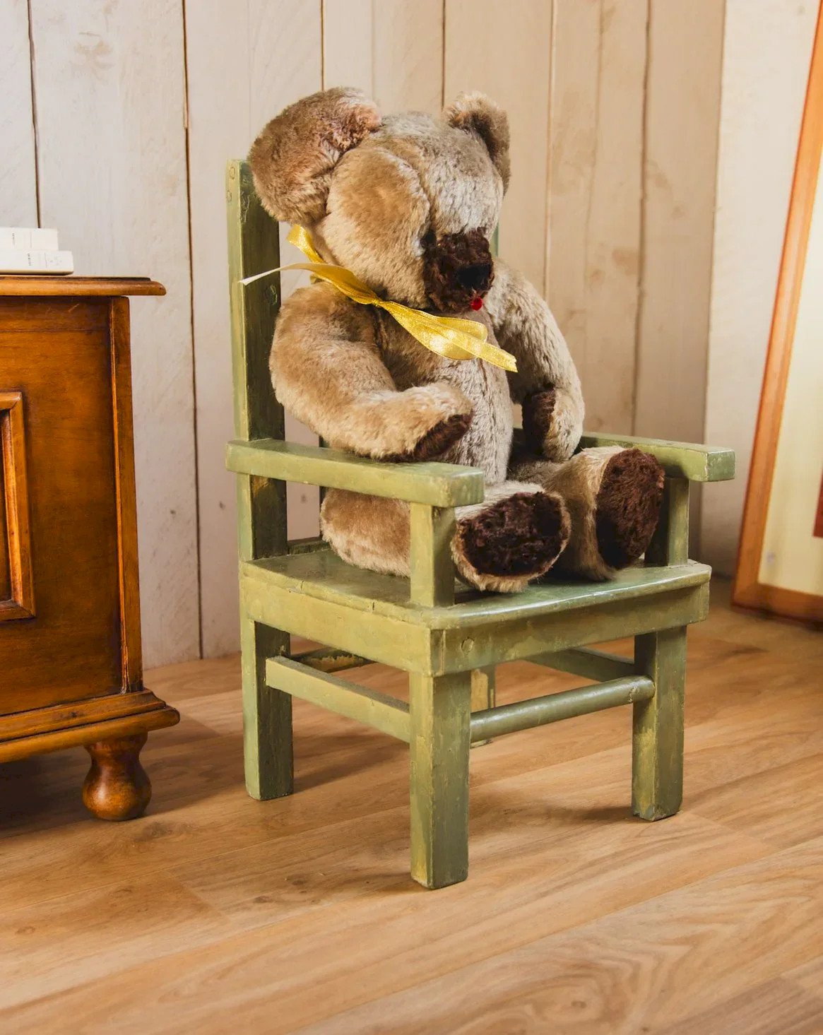 Découvrez cette chaise enfant en bois massif au charme rétro, sa peinture verte patinée et ses lignes simples invitent à créer un coin lecture ou un espace ludique dans la chambre. Compacte et bien proportionnée pour les plus jeunes, elle apporte une touche espiègle et chaleureuse tout en restant solide et fonctionnelle pour un usage quotidien. Sa finition patinée participe à une ambiance vintage douce et inspirante. Peinture écaillée et traces du temps visibles. Longueur : 34 cm Largeur : 32,5 cm Hauteur : 60 cm Hauteur d'assise : 24 cm Profondeur de l'assise : 29 cm Largeur de l'assise : 25 cm État:Occasion: Objet ayant été utilisé. Objet présentant quelques marques d'usure superficielle, ...Occasion: Objet ayant été utilisé. Objet présentant quelques marques d'usure superficielle, entièrement opérationnel et fonctionnant correctement. Il peut s'agir d'un modèle de démonstration ou d'un objet retourné en magasin après une courte période d'utilisation. les éventuelles imperfections. Couleur:Multicouleur Hauteur:Bois Largeur:Chaises Marque:Debongout Type:Produit chiné Matériau:Bois Style:Campagne