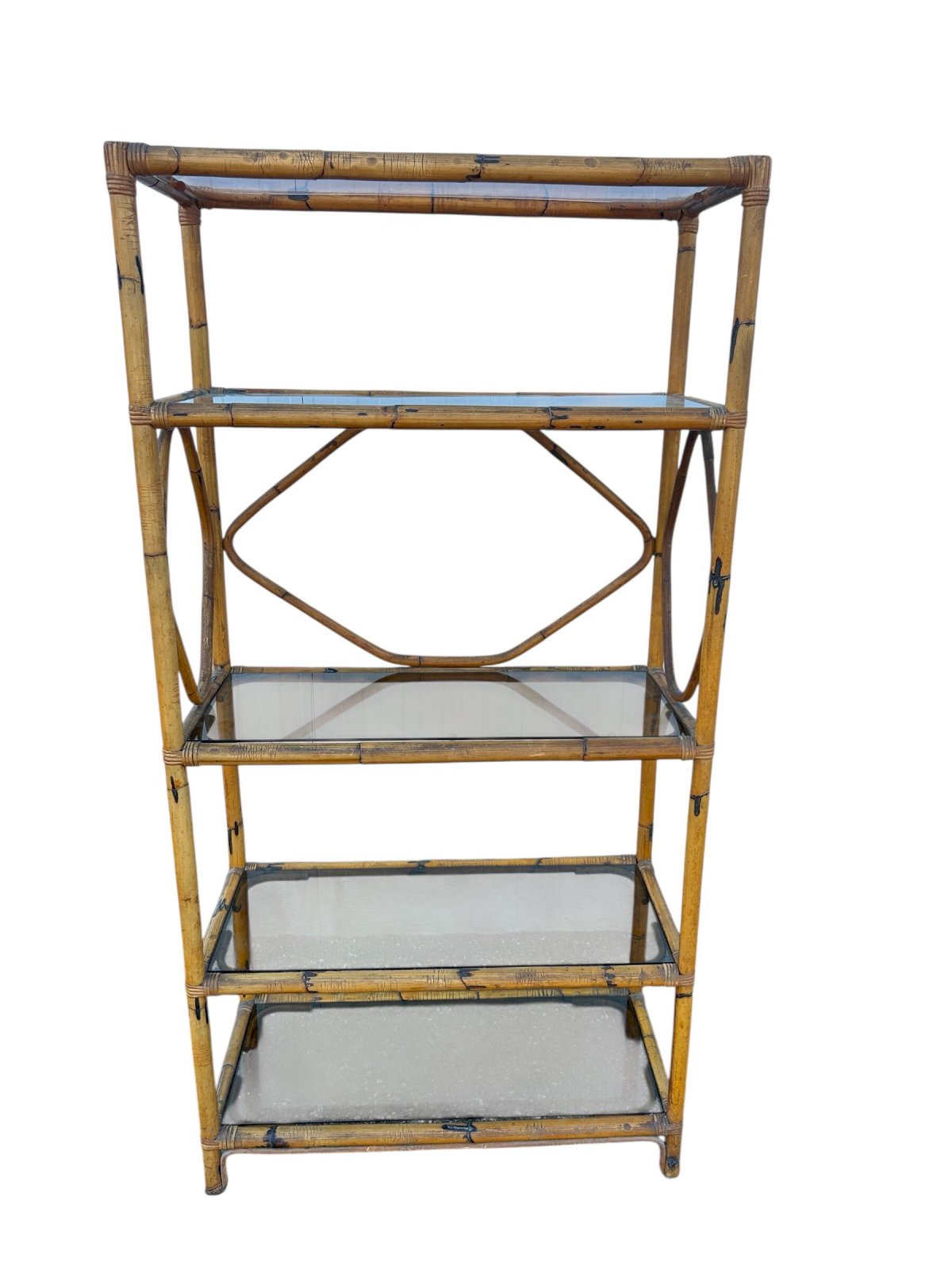 Ancienne Petite étagère bibliothèque Rotin Vintage Old rattan bookcase shelf