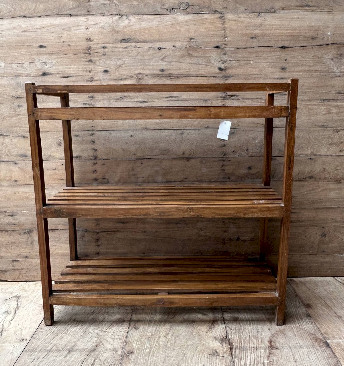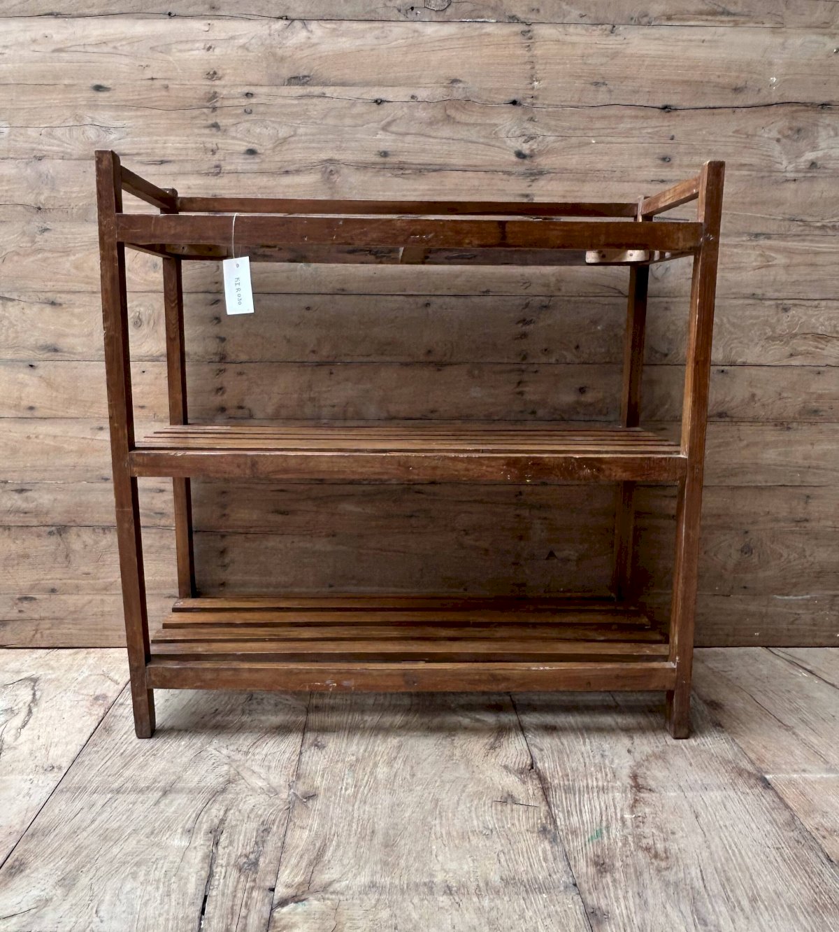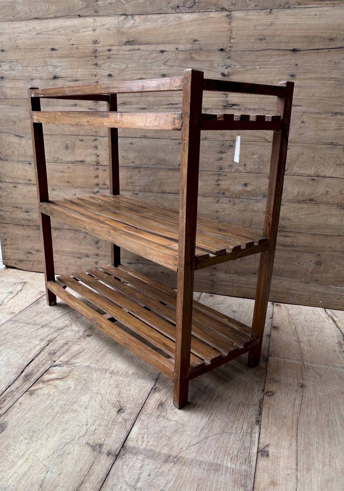 Ancienne étagère d’atelier en teck birman patine teck - écrue d’origine