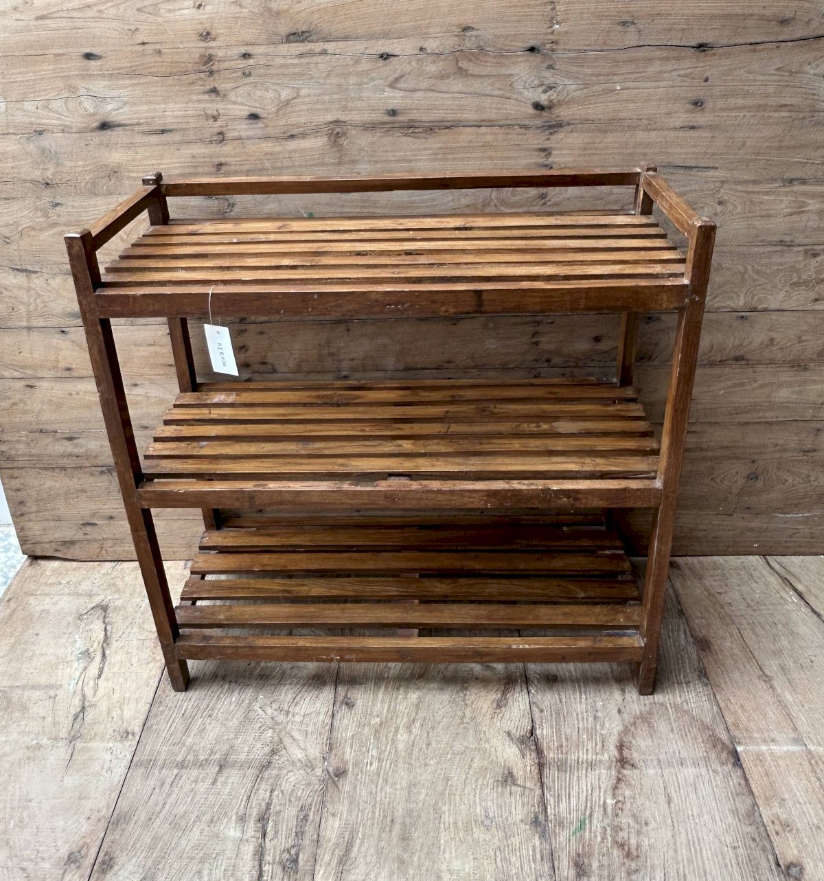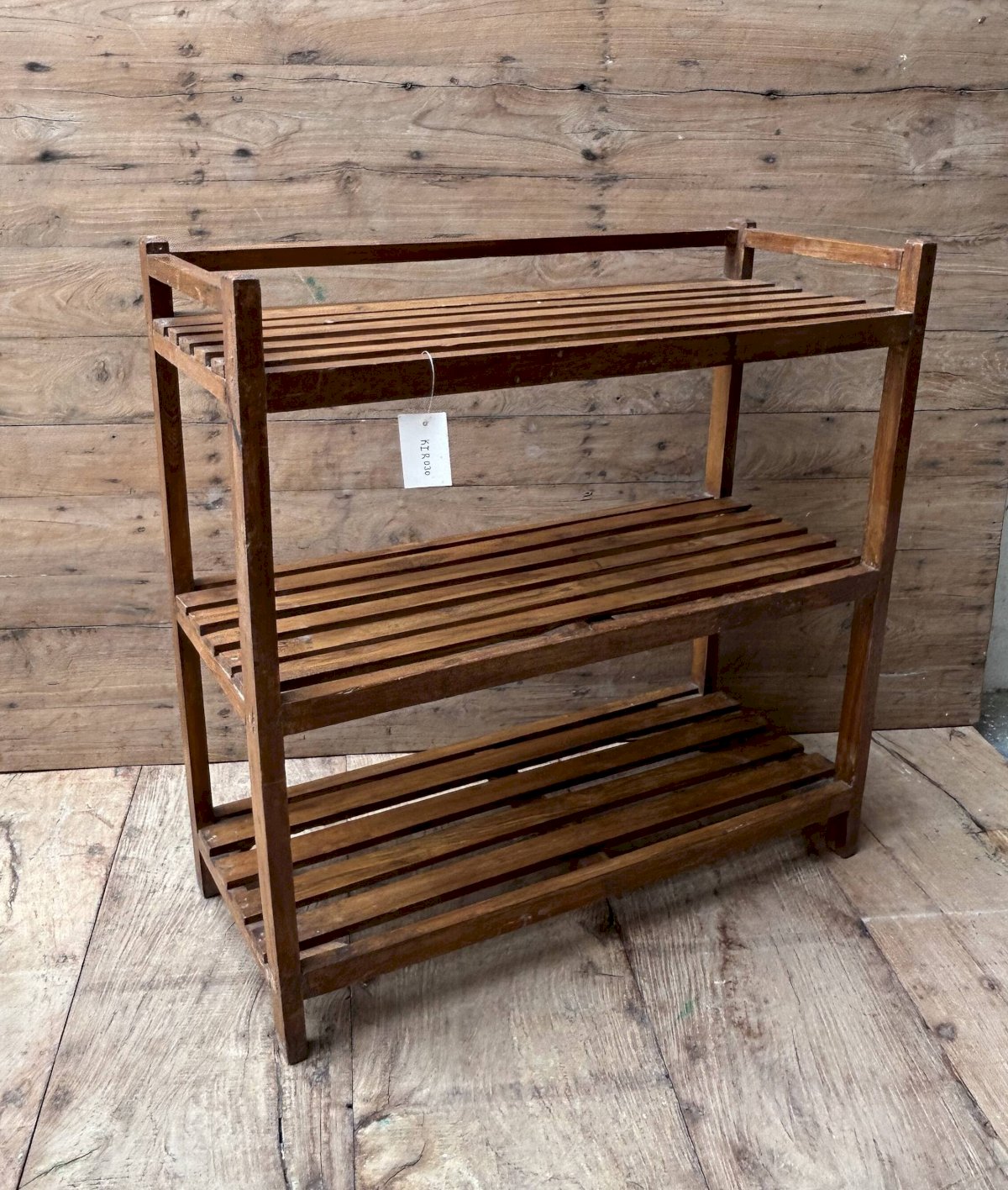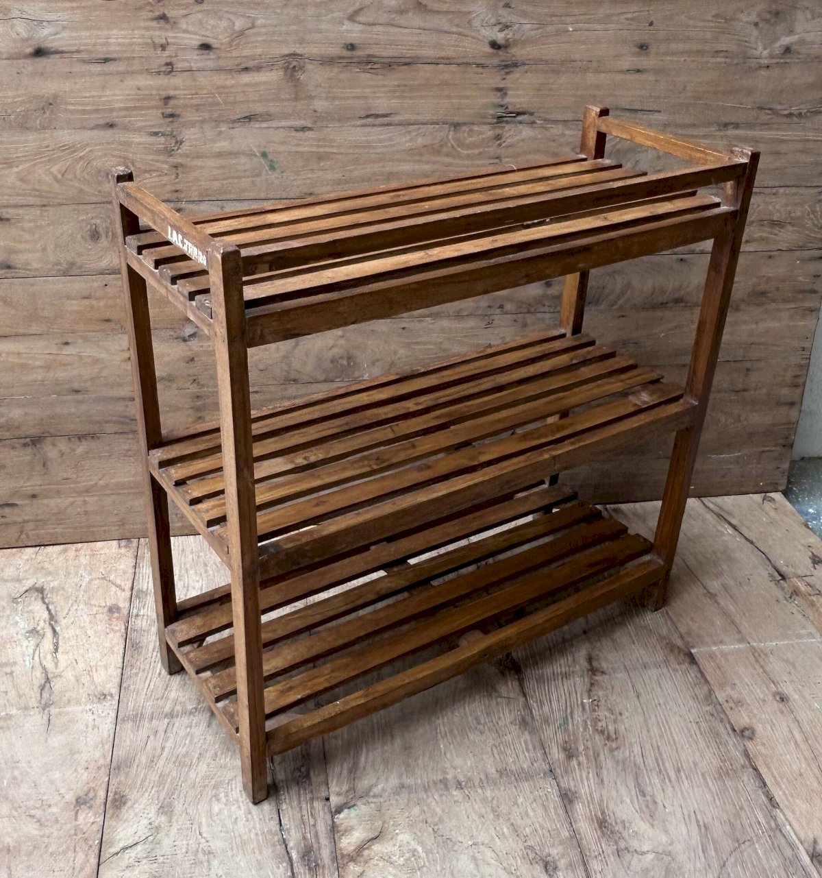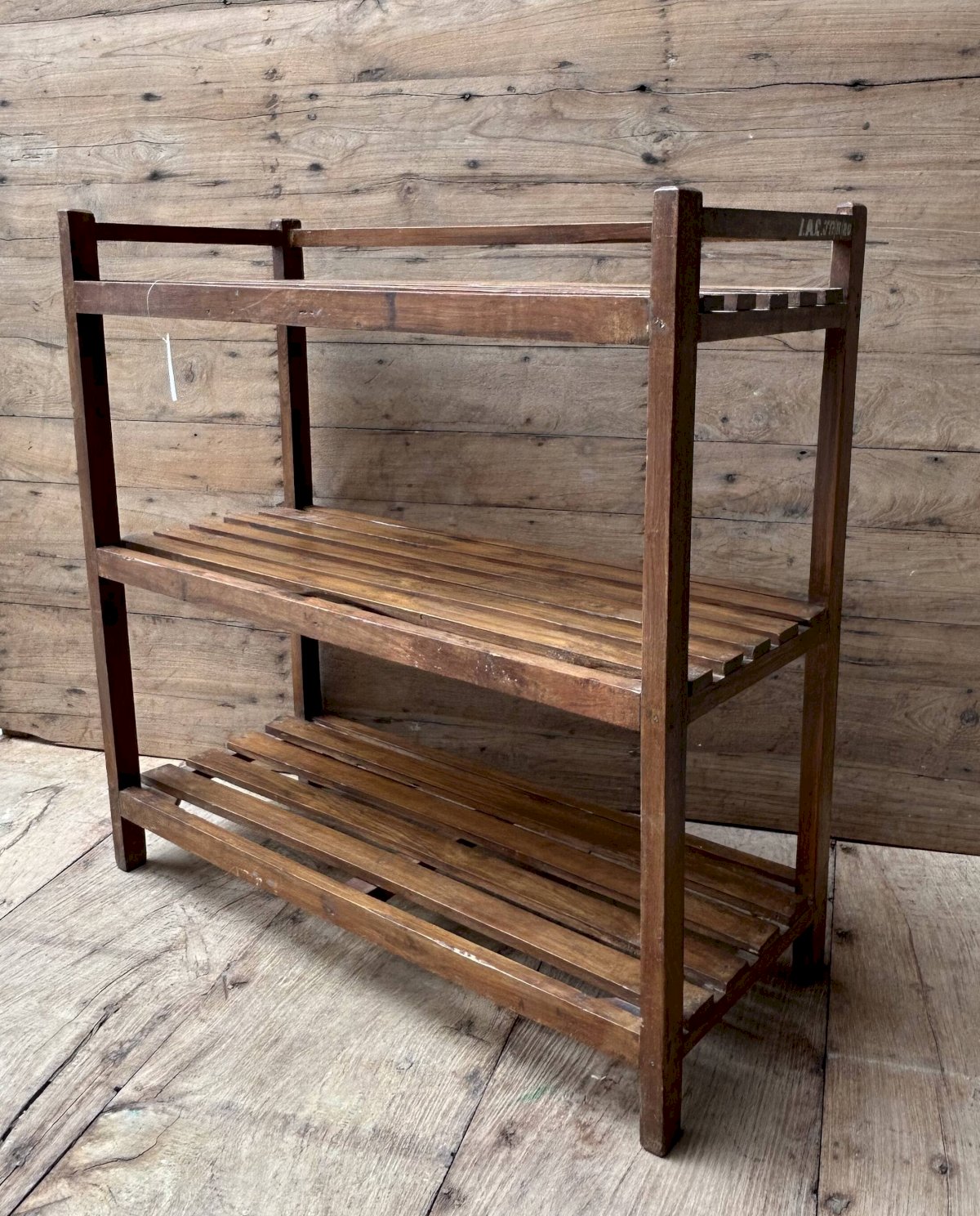 Ancienne étagère d’atelier en teck birman patine teck - écrue d’origine