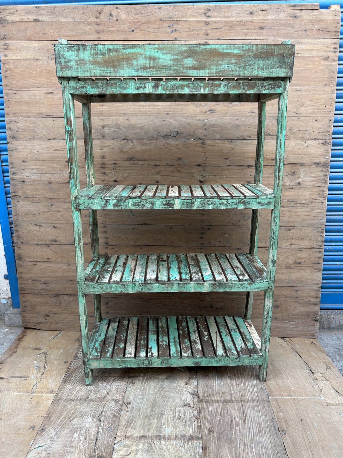 étagère en teck birman avec patine dorigine Ethnique Bleu Bois