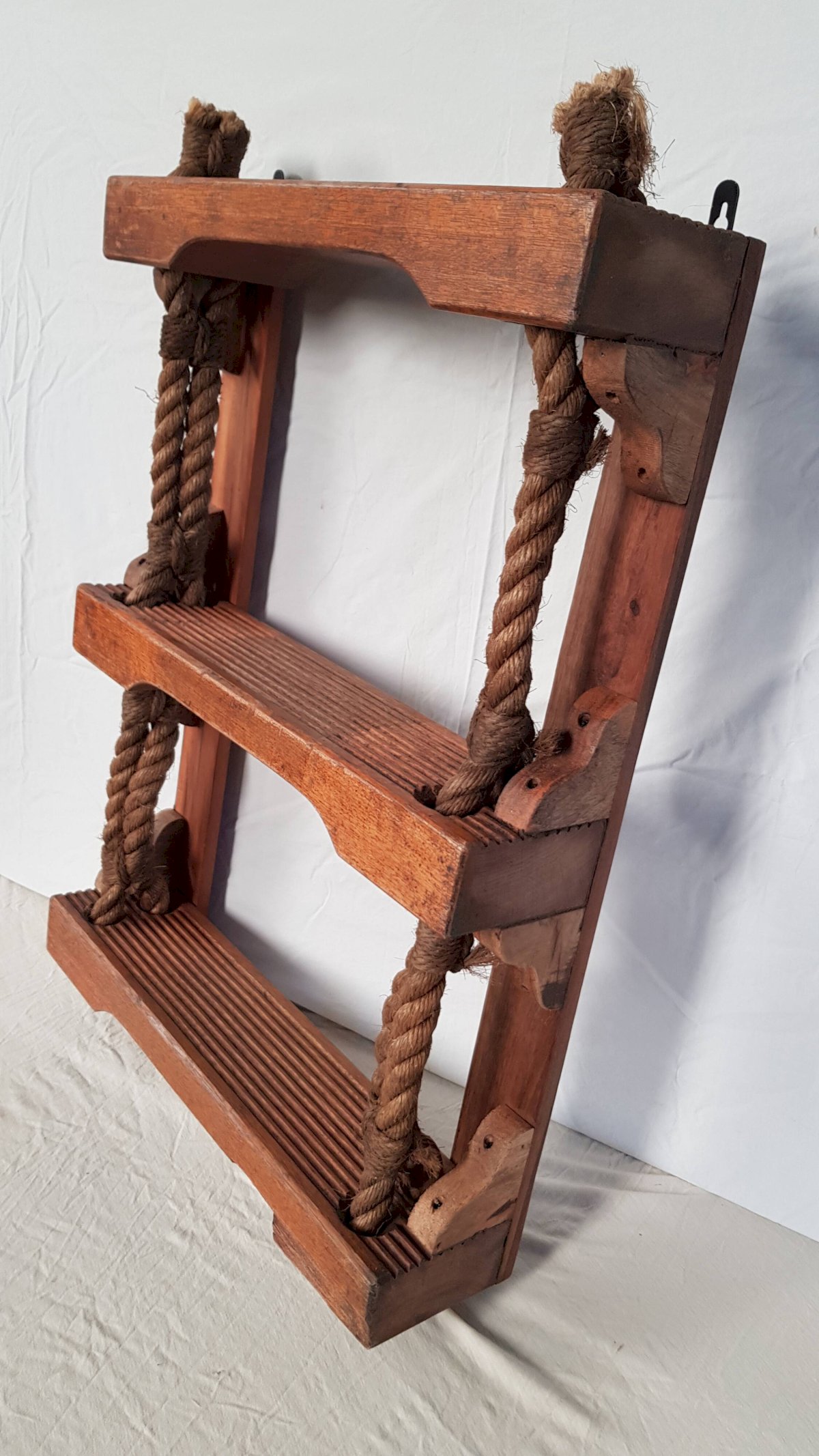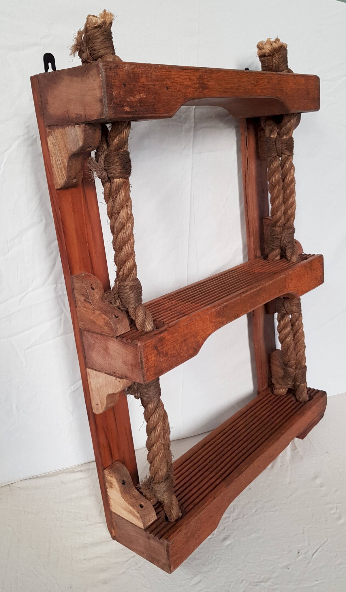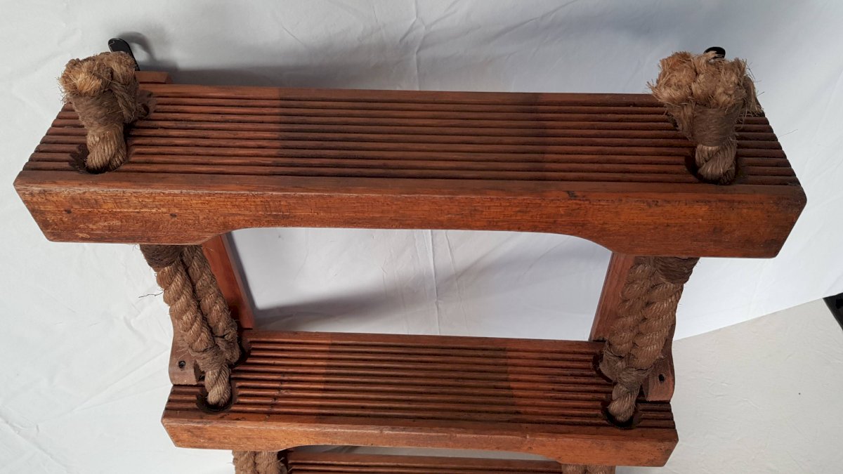 Étagère murale 3 niveaux / échelle de bateau en corde + bois / 52 x 15 x 85 cm - 8kg / double accroches au dos pour fixation murale