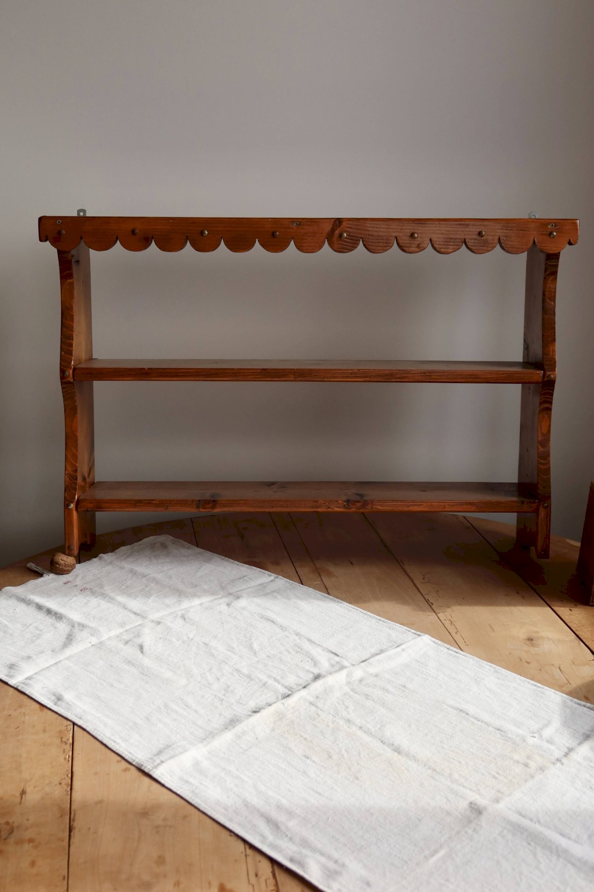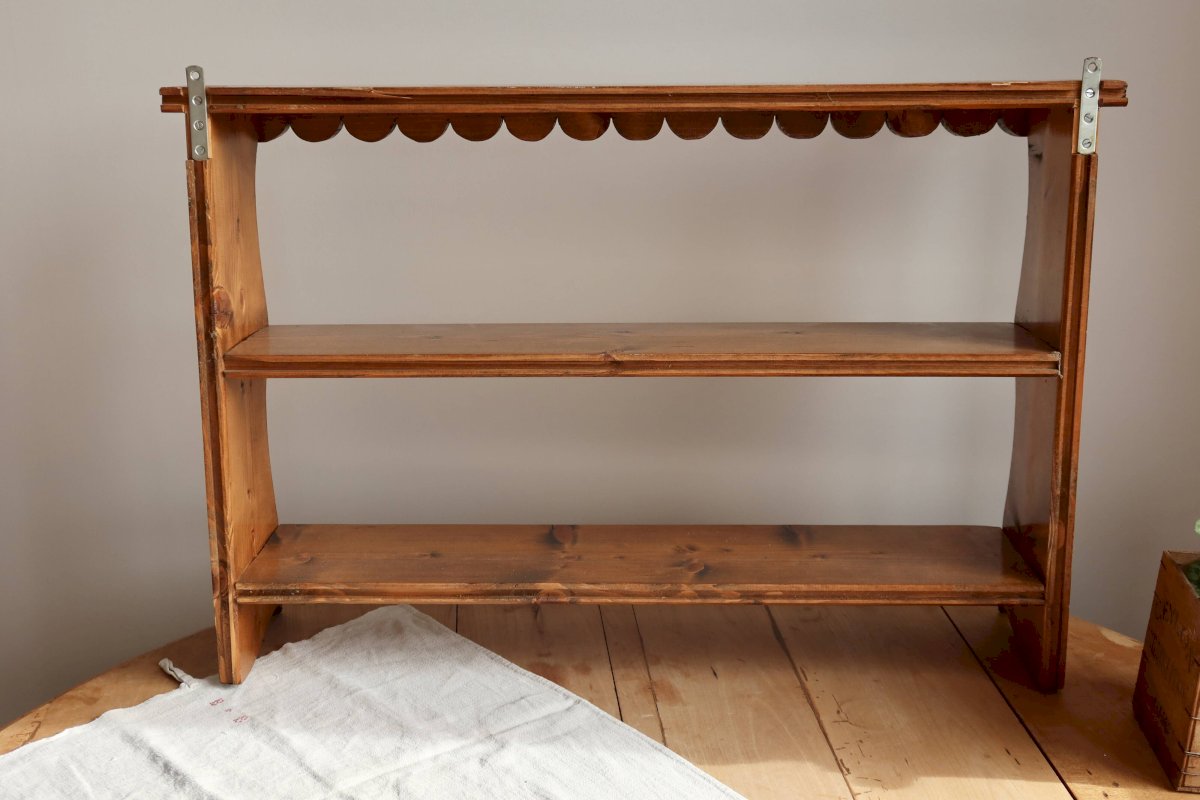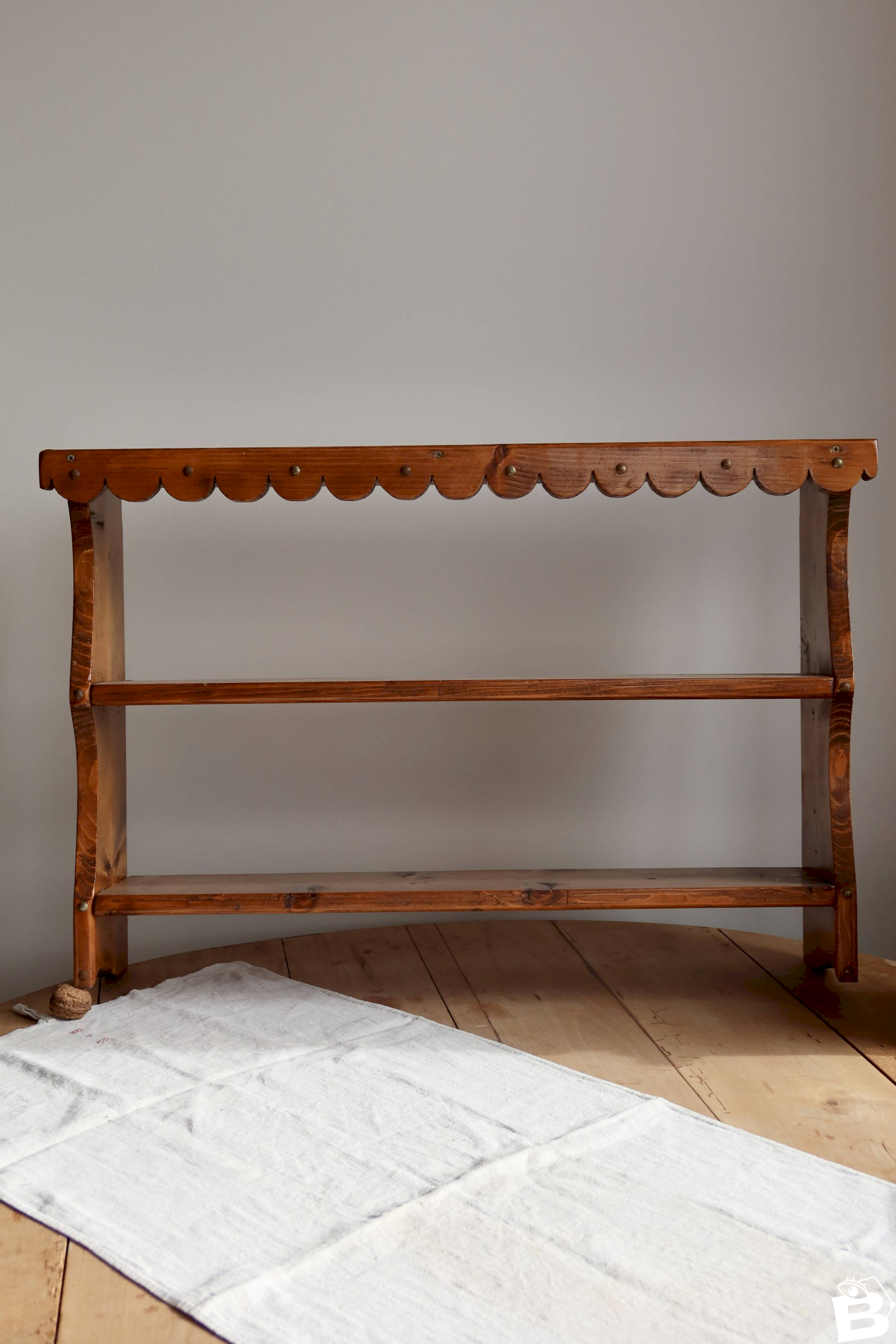 Étagère murale en pin vintage à fronton festonné