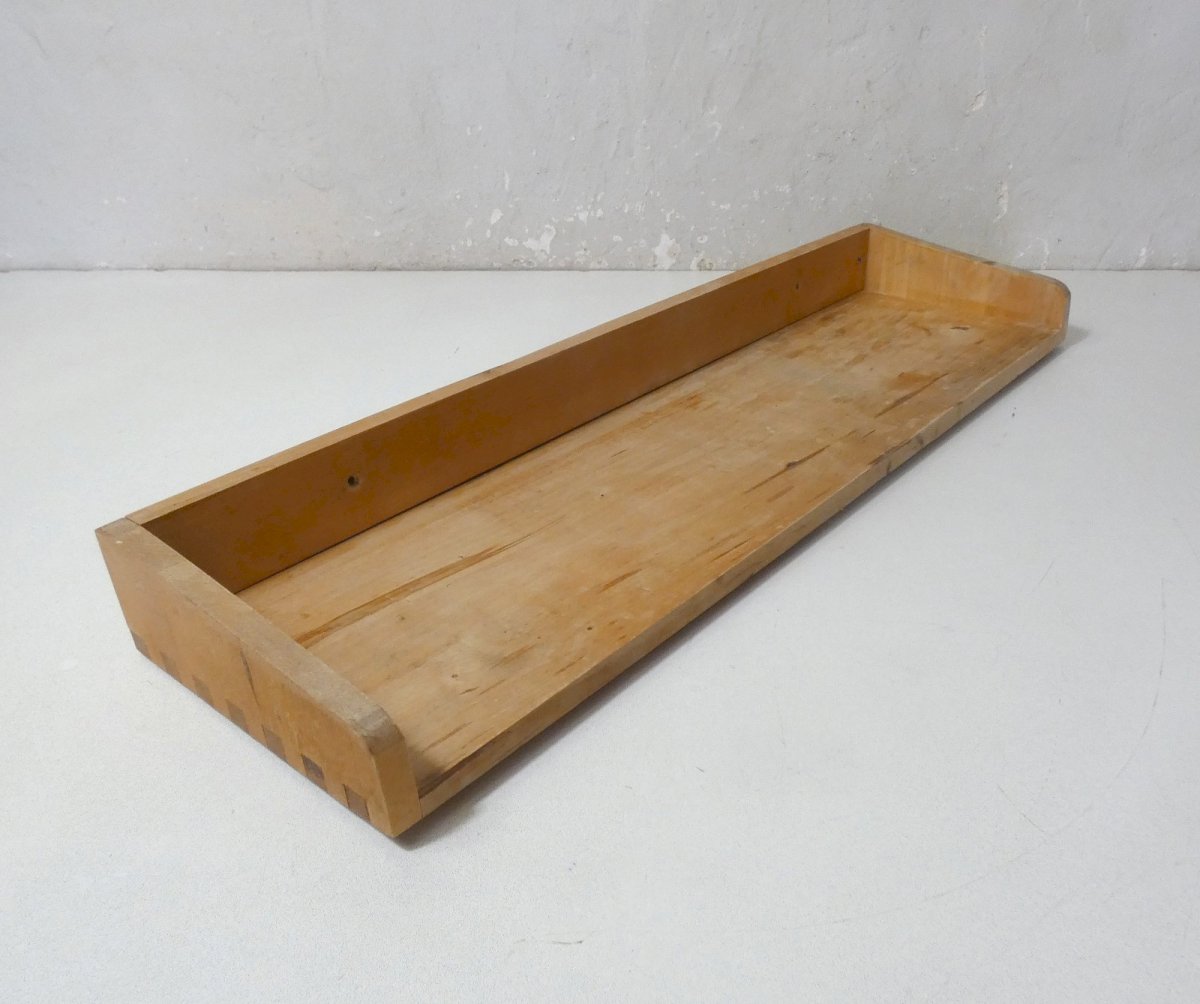 étagère, plateau mural, en bois. Hauteur: 6 cm. Largeur: 60 cm. Profondeur: 17 cm. Cette étagère est en très bon état avec des traces d'usage et de vieillissement superficielles.