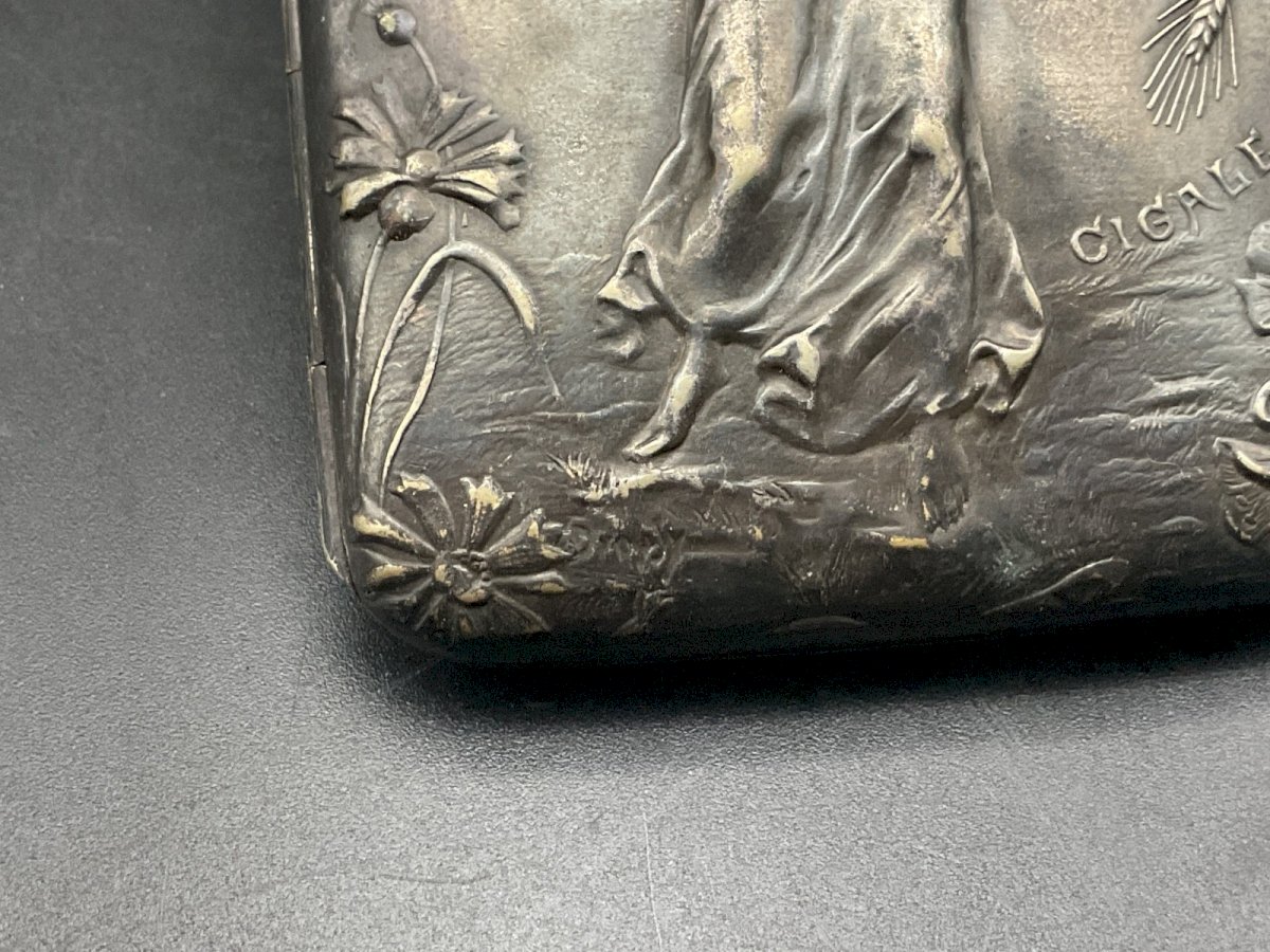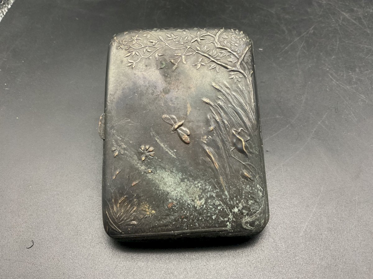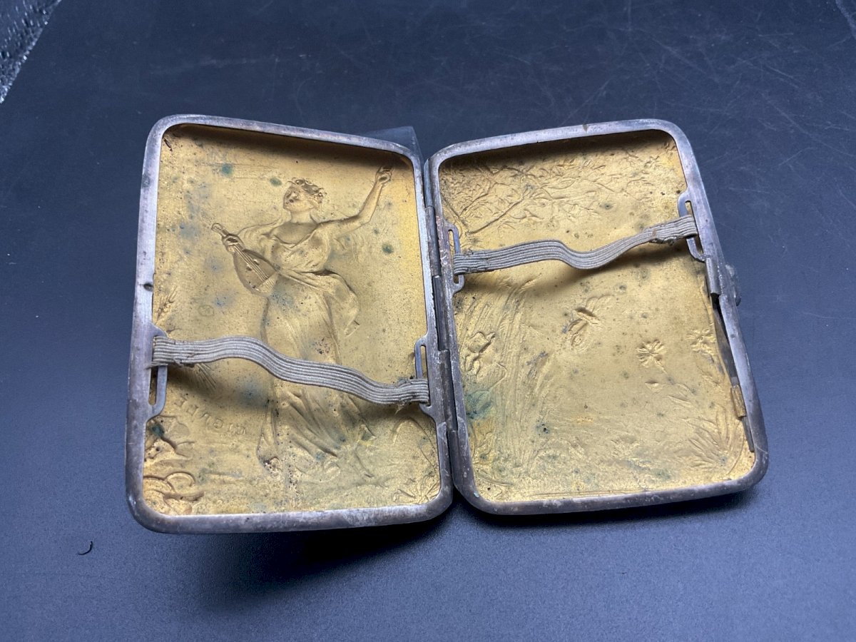 étui à cigarettes  .Art Nouveau signé DROPSY Dimension : 8,3 x 6 cm Authenticité:Original Type:Objet de vitrine, Décoratif Origine:France Sous-type:Étui Matière:Bronze Style:Napoléon III