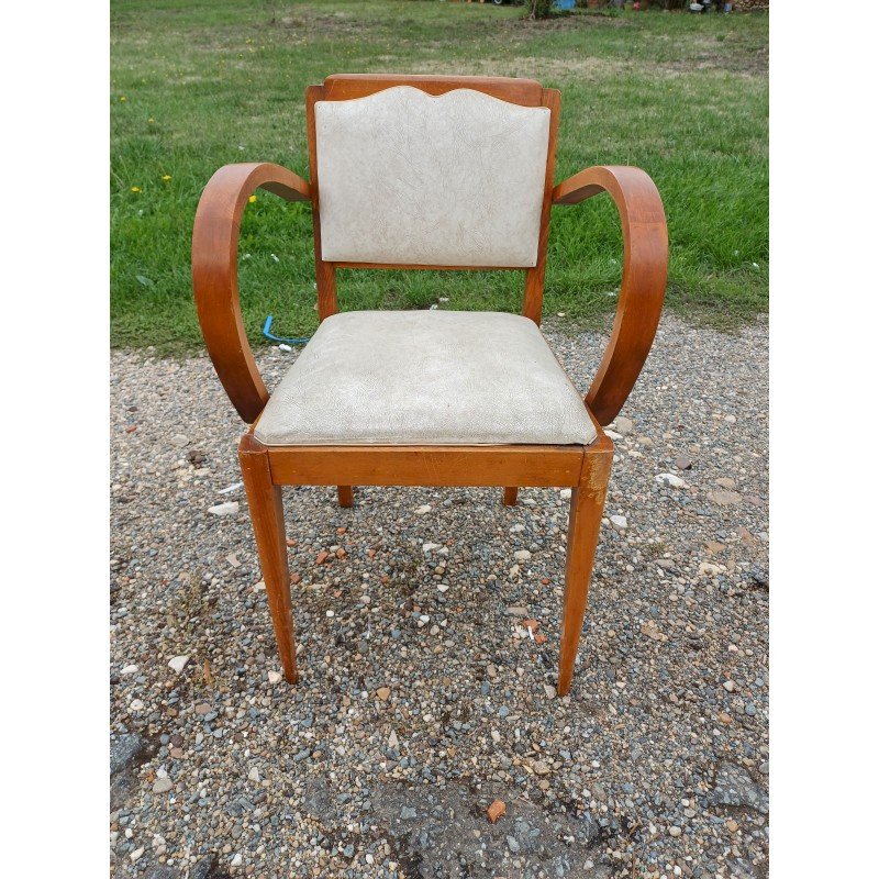 Fauteuil Bridge Hétre et Skai Beige  , Haut : 80 cm , Haut d'assise : 50 cm , long et larg : 47 cm sur 52 cm , poids : 6 Kg , trés bon état ,