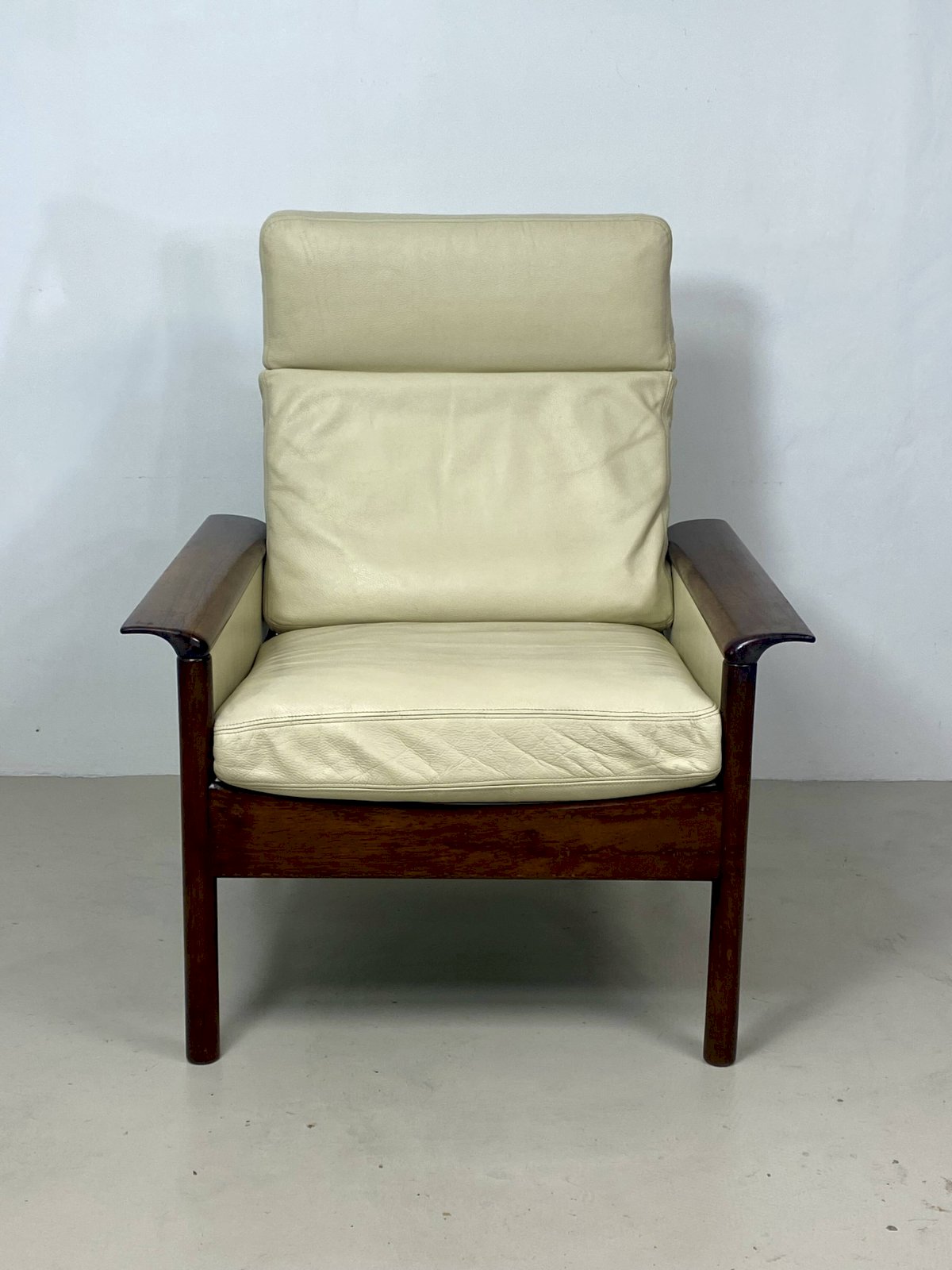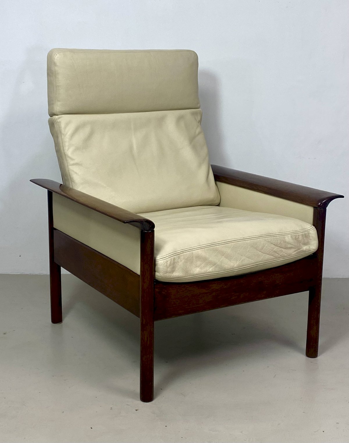 Fauteuil Hans Olsen – Vatne Møbler (Danemark, années 1960) Scandinave Blanc Bois