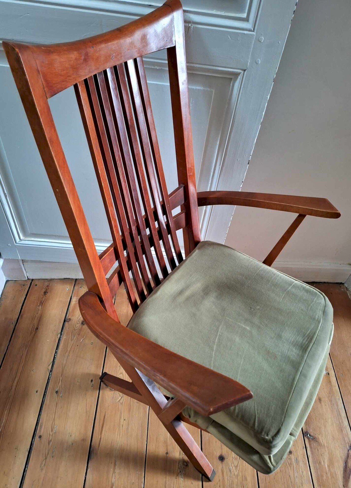 Merci de m’écrire si vous souhaitez me faire une offre. Fauteuil relax vintage 3 positions, meuble siège ancien Siège à système 3 positions pour aisément passer du mode assis au mode relaxation chaise longue. Dimensions en position allongée 60x94xh70cm, assise 37cm. En position assise 60x60xh101cm, assise 53cm. Traces normales d’usage discrètes, le coussin est d’origine (velours vert). Bois massif. Remise à mon domicile ou livraison possible via transporteur (ex 40€ vers Paris et région parisienne, me contacter pour d’autres destinations). Les délais de livraison de 2 à 4 jours sont imposés par et sont donc donnés à titre purement indicatif. Chaise transat scandinave design Type:Fauteuil