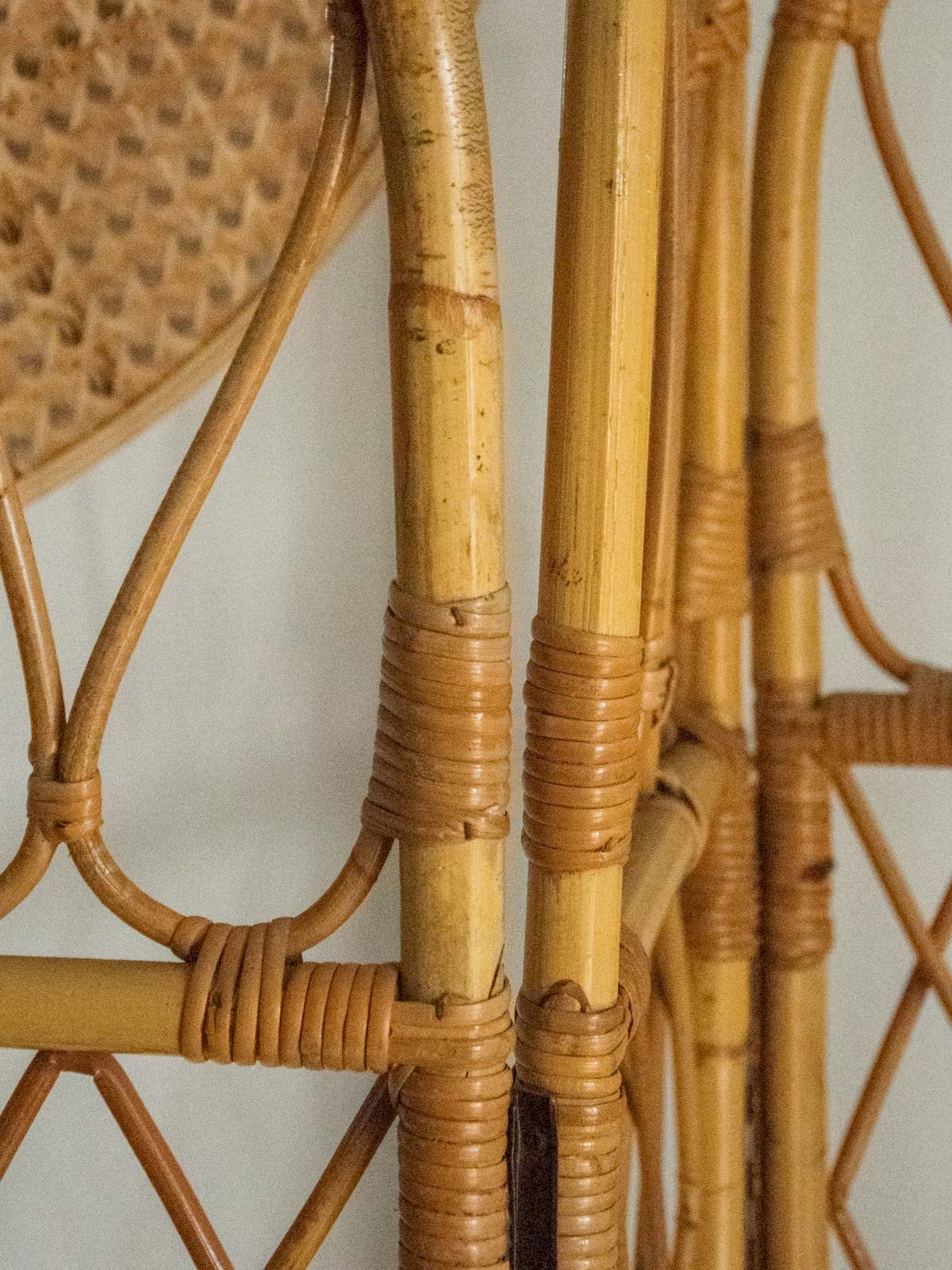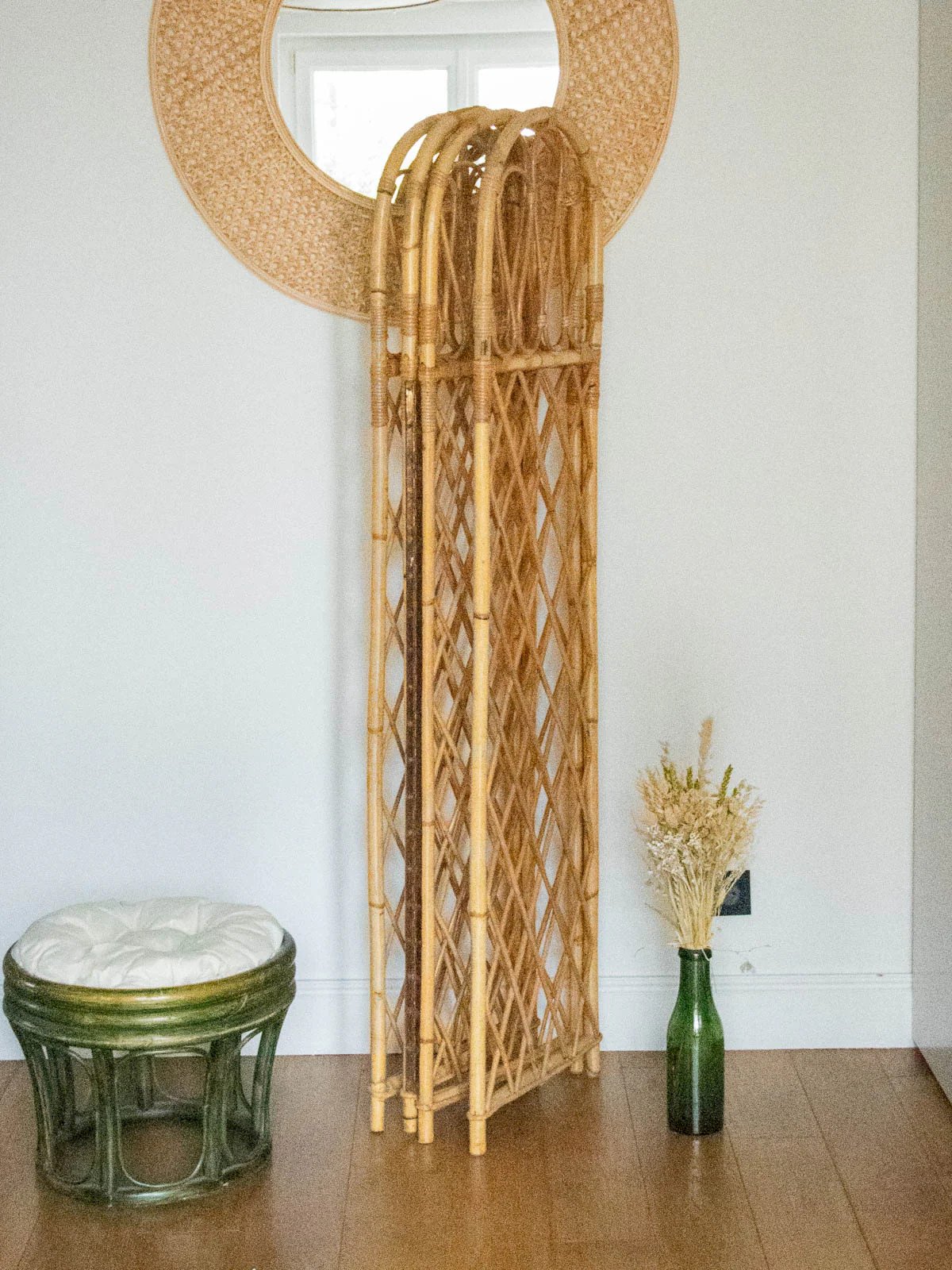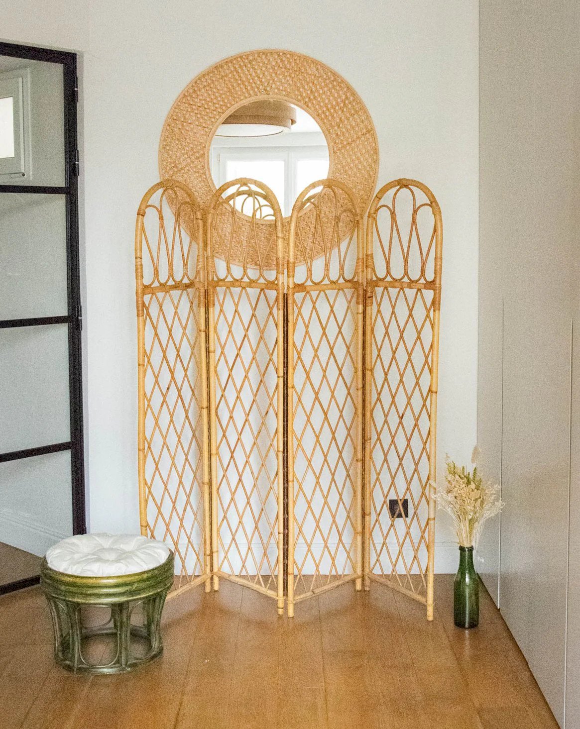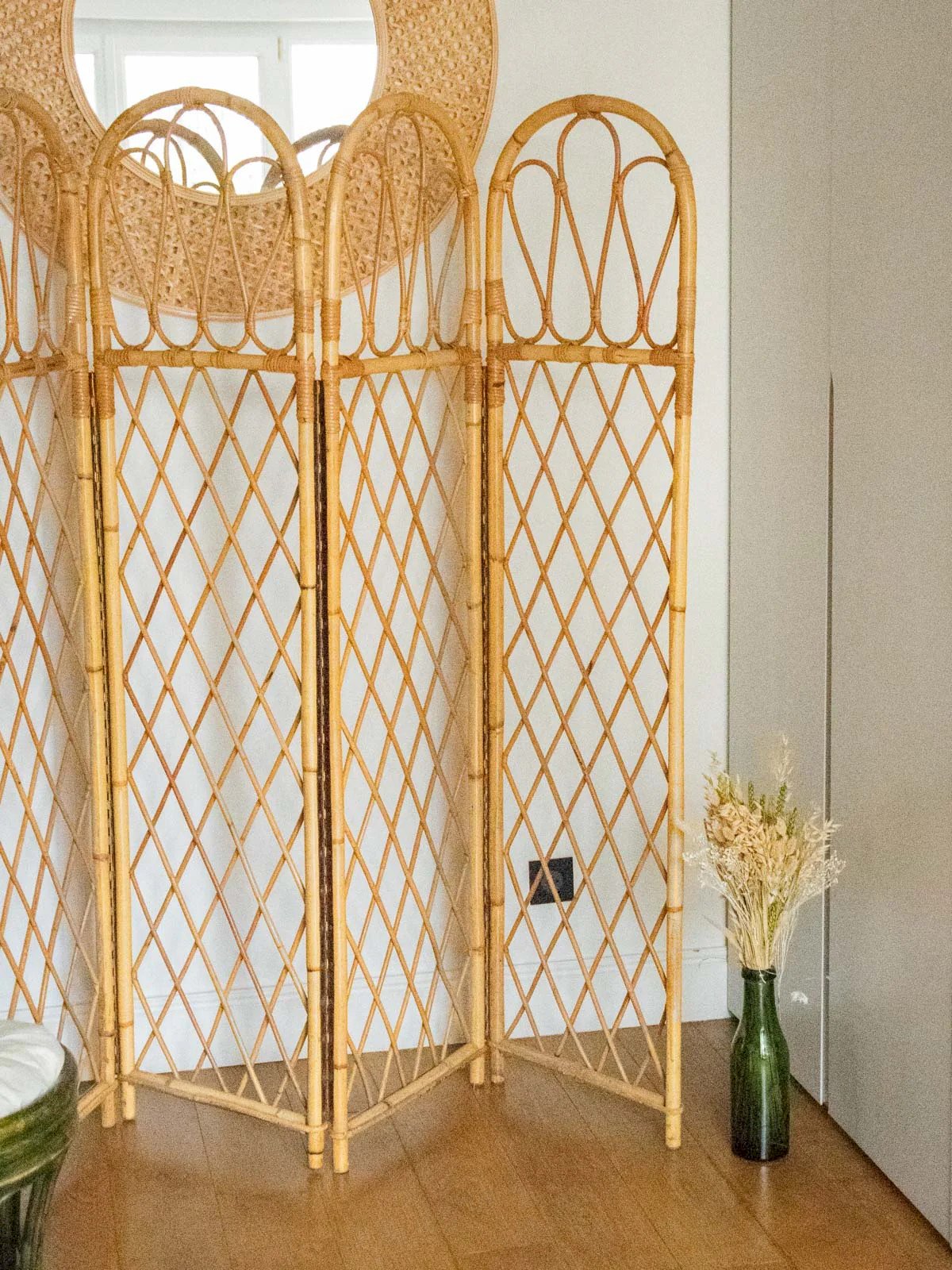 Invitez ce paravent en rotin à structurer votre intérieur avec élégance : ses quatre panneaux au sommet arrondi dessinent une séparation légère et aérienne, idéale pour créer un coin lecture ou dissimuler un dressing sans alourdir la pièce. Le tressage naturel apporte chaleur et texture, laissant filtrer la lumière pour une ambiance douce et accueillante. Plié, il se glisse facilement derrière un canapé ou dans une entrée pour plus de modularité. Longueur : 142 cm Largeur ouvert : 34 cm Largeur fermé : 14 cm Hauteur : 164 cm État:Occasion: Objet ayant été utilisé. Objet présentant quelques marques d'usure superficielle, ...Occasion: Objet ayant été utilisé. Objet présentant quelques marques d'usure superficielle, entièrement opérationnel et fonctionnant correctement. Il peut s'agir d'un modèle de démonstration ou d'un objet retourné en magasin après une courte période d'utilisation. les éventuelles imperfections. Marque:Debongout Type:Produit chiné Matériau:Rotin Style:Campagne